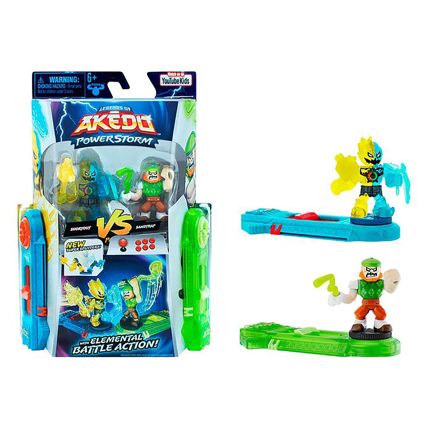 The Legends of Akedo are back and ready for some more "Elemental Battle Action"! It's the return of the Legends of Akedo Power Storm! Boosted with elemental powers, more Akedo Warriors are battle-ready with new weapons, fighting styles and game play! There are 14 new warriors to collect throughout the Power Storm Series 4 and each is power-boosted by one of the six elements: Earth, Fire, Water, Light, Shadow and Lightning! There are Classic, Epic, Ultra Rare, Legendary and new "Super Splitters" warriors to collect. (Super Splitters have the combined powers of two elements!) KIds can level up their skill and strategy with the "Elemental Battle Abilities"! Kids can start battling straight out of the box with the Akedo Power Storm Versus Pack. With everything they need to battle with their friends, the Burndown vs Shred Head Versus Pack includes 2 Warriors Burndown: A Super Splitter who has the combined powers of two elements and Akedo Warrior Shred Head. The pack also contains , 2 Battle Controllers. There are three Akedo Power Storm Versus Packs to collect in Series 4, each with an awesome grudge match waiting to occur! Will your warrior be on the winning team and become a Legend of Akedo? Ready! Fight! Split Strike!