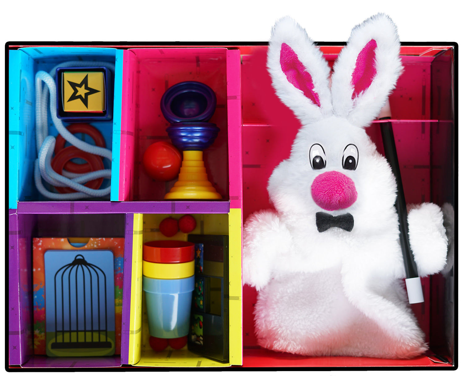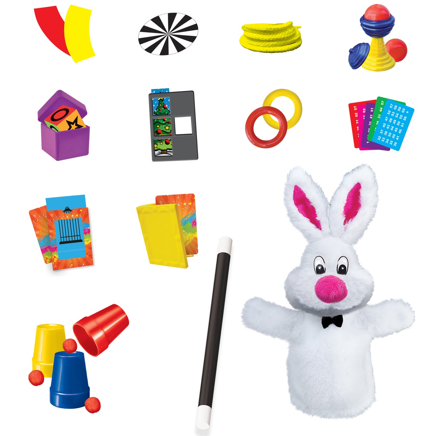 This set is for budding magicians ready to create their first magic show. It includes a plush hand puppet bunny and colourful props to help you create an outstanding magic show. 100 easy to perform tricks supported by online instructional videos. Suitable for Ages 5+.