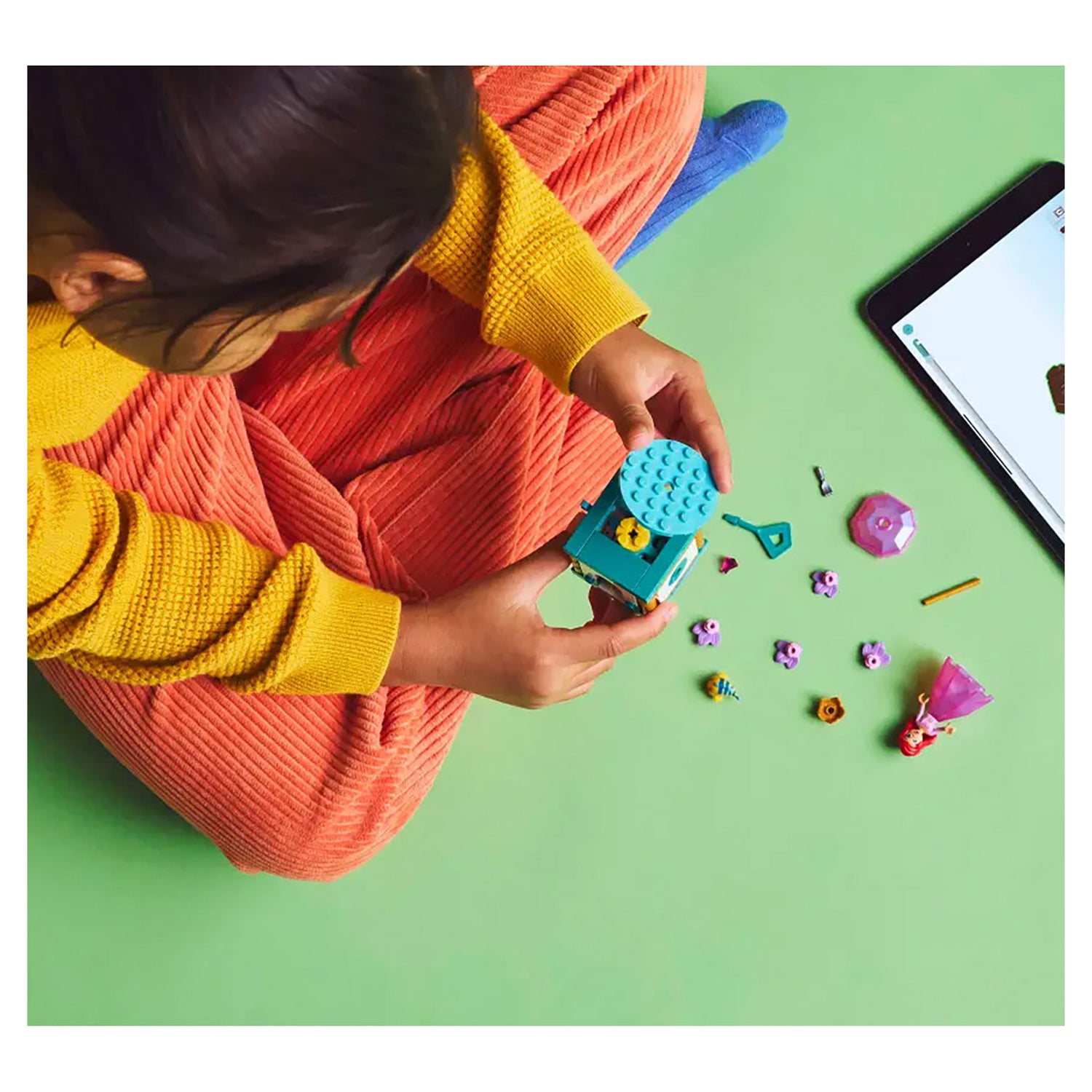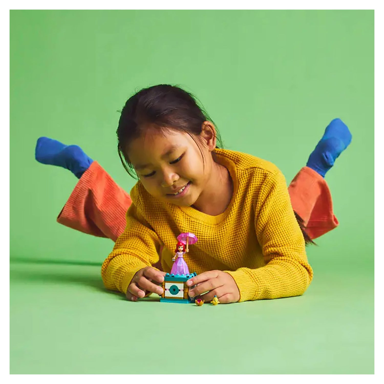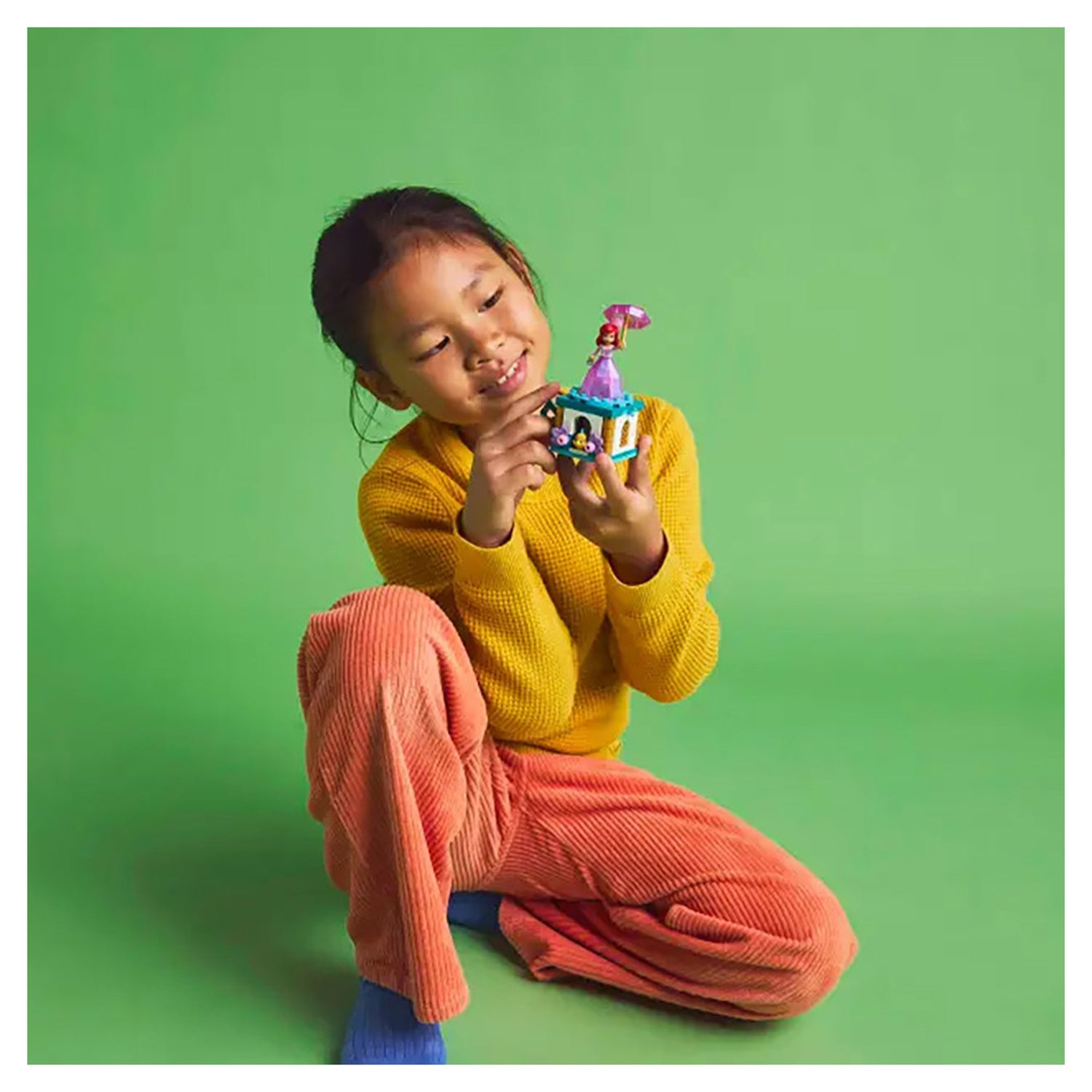 Buildable model for kids – Treat girls and boys aged 5 and up who love creative role play to this Twirling Ariel building kit and fun Disney’s The Little Mermaid fantasy movie buildable toy displayDisney Princess building kit – The building toy has a stand with turntable and key, an Ariel LEGO® ǀ Disney mini-doll figure in a transforming ’diamond’ dress and a Flounder LEGO ǀ Disney fish figureEngaging building toy – Turn the key on the stand to spin the plate and twirl Ariel around, then store the LEGO® ǀ Disney mini-doll figure inside the ’diamond’ dress using the umbrella as a lidBuilding set for kids – Place the building set with Ariel, her fork and an umbrella on display and add Flounder and the ’diamond’ to the stand, or play out new stories with Ariel and FlounderFun gift for girls, boys and kids aged 5 and up – This LEGO® ǀ Disney building set with 2 movie characters and a stand with turning plate makes a fun birthday gift that’s easy to play with on the goLEGO® ǀ Disney play – Add this building toy to the extensive assortment of LEGO building toys and LEGO ǀ Disney buildable sets (sold separately) in the rangeExpand life skills – With 2 LEGO® ǀ Disney characters, a ’diamond’ dress that doubles as storage and a stand with turning plate, this building set fosters creativity and other life skills through funMeasurements – This 93-piece building set features a stand with a LEGO® ǀ Disney mini-doll figure that, together, measure over 4 in. (11 cm) high, 2 in. (6 cm) wide and 1.5 in. (5 cm) deep