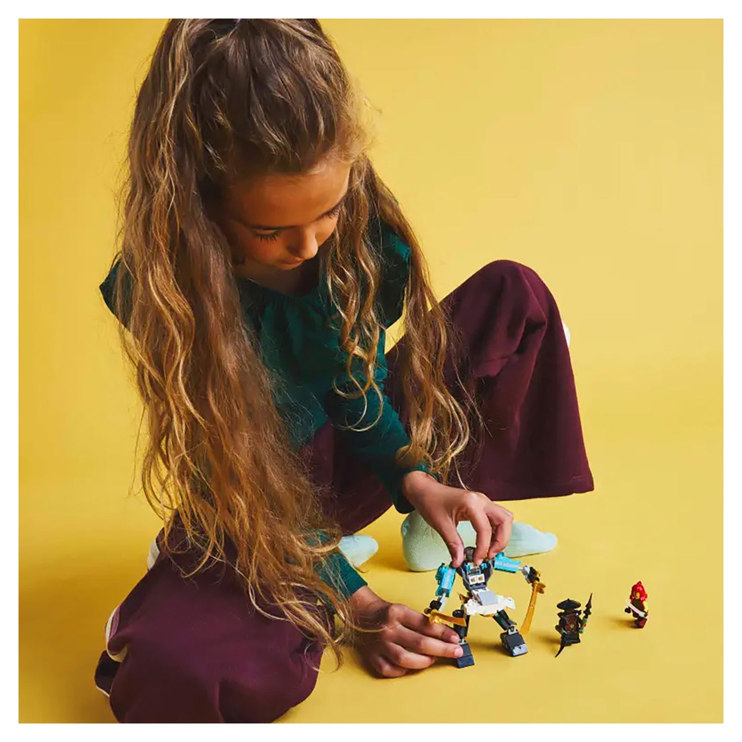 LEGO® NINJAGO® pretend play toy for kids – Zane’s Battle Suit Mech lets boys and girls aged 6 and up recreate exciting scenes from season 3 of the NINJAGO Dragons Rising TV showPosable mech toy – Zane’s Battle Suit Mech has posable arms, legs and hands, an upper body that rotates through 360 degrees, an opening chest to place a minifigure inside and 2 big sword accessories3 NINJAGO® minifigures – This LEGO® building set comes with Zane dressed in never-before-seen armor, Wyldfyre and Master of Swarm Drix for ninja fans to play out action-packed battlesWeapon accessories – Each NINJAGO® character minifigure has a weapon for enhanced play value: Zane has 2 shurikens, Wyldfyre has a crystal katana sword and Drix has 2 sicklesNinja gift idea for kids – This small LEGO® set provides a fun build-and-play experience and is a treat gift idea for boys and girls aged 6 and up who have a passion for ninja adventuresBigger ninja adventures – Look out for more LEGO® NINJAGO® toys (sets sold separately) featuring dragons, temples and vehiclesA universe of LEGO® NINJAGO® toys – Extensive collection of toy playsets let kids escape into a fantasy world for imaginative play with their ninja heroesMeasurements – This 92-piece LEGO® NINJAGO® building set for kids includes Zane’s Battle Suit Mech figure standing over 4 in. (10 cm) tall