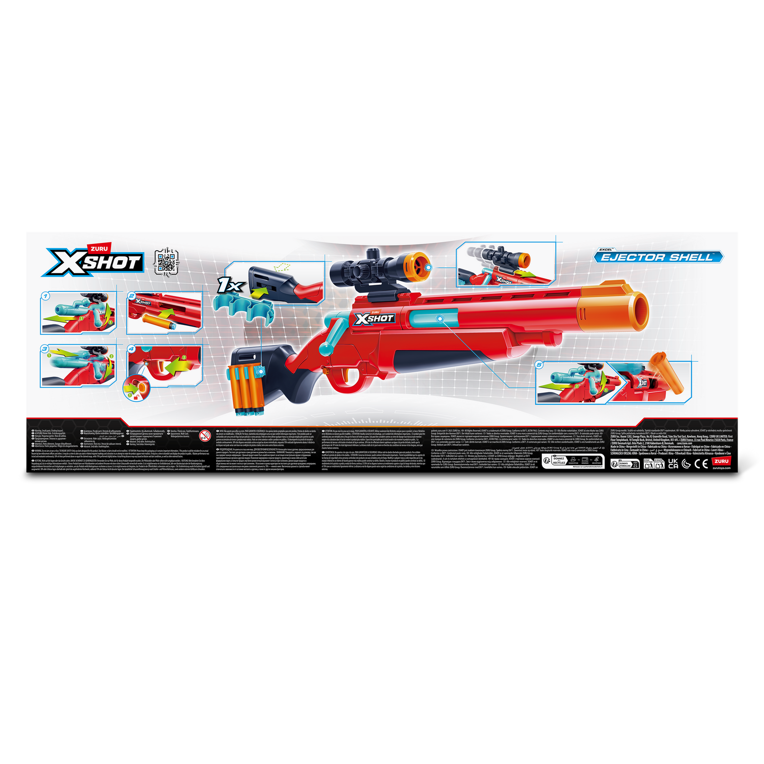 Lock, load, and dominate the battlefield with the XSHOT Excel Ejector Shell Blaster by ZURU & the ultimate dart blaster for power, precision, and authentic battle play. This high-performance blaster features true bolt-action blasting and realistic shell-ejecting reloads that launch used shells after every shot, adding immersive detail to every battle. With its built-in tactical scope, players can line up their targets for pinpoint accuracy, while the impressive 90ft (27m) firing range keeps opponents at bay. The XSHOT Excel Ejector Shell Blaster comes fully equipped with 16 Air Pocket Technology darts for improved speed, stability, and distance. The integrated dart storage ensures you can quickly reload and stay in the fight longer. Its durable construction and sleek design make it the perfect choice for both indoor and outdoor play, whether you're staging tactical missions, outdoor backyard battles, or competitive tournaments. Designed for kids ages 8+, teens, and adults, the XSHOT Excel Ejector Shell Blaster is ideal for gifting or building your blaster collection. With a combination of realistic shell ejection, high firing power, and unmatched performance, this blaster delivers next-level fun for every dart battle.