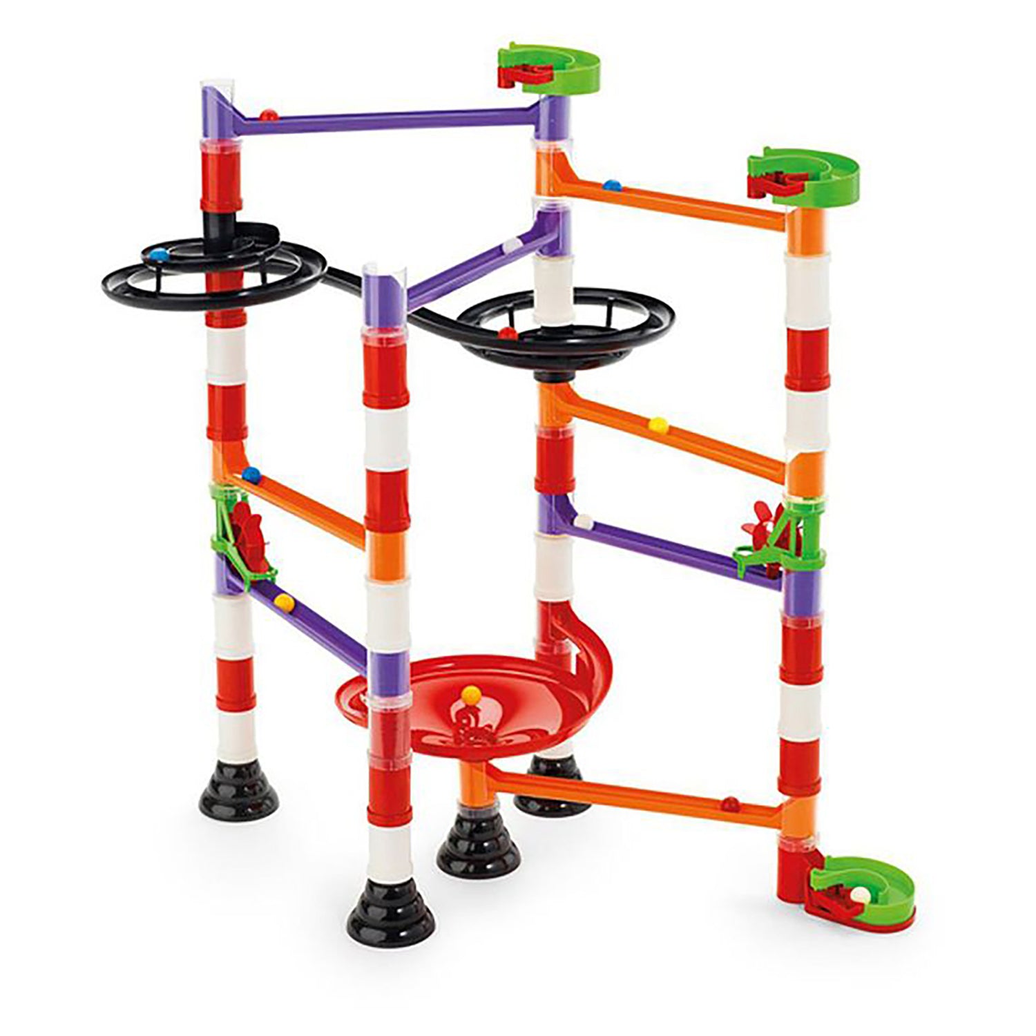 The 75-piece set includes a double entrance large funnel vortex chamber, 2 spiral tracks, sturdy base pieces and marbles. Create your own marble runs with this exciting construction set or reproduce the models pictured on the box. Little engineers will love slotting together the interlocking chutes, bridges, straight and curved rails, spinning-wheels, spirals and funnels, to create infinite variations for long-lasting fun for the whole family.