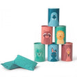 The traditional game of knock them down tin throwing has had a makeover. Stack these colourful metal tins, stand back, take aim and knock them down. Each tin is finished with numbers on one side and wild animals on the other including a seal, bear, lion and more. Contains 6 metal tins (10cm high) and 3 throwing bags. For 1-3 players aged from 3 years..