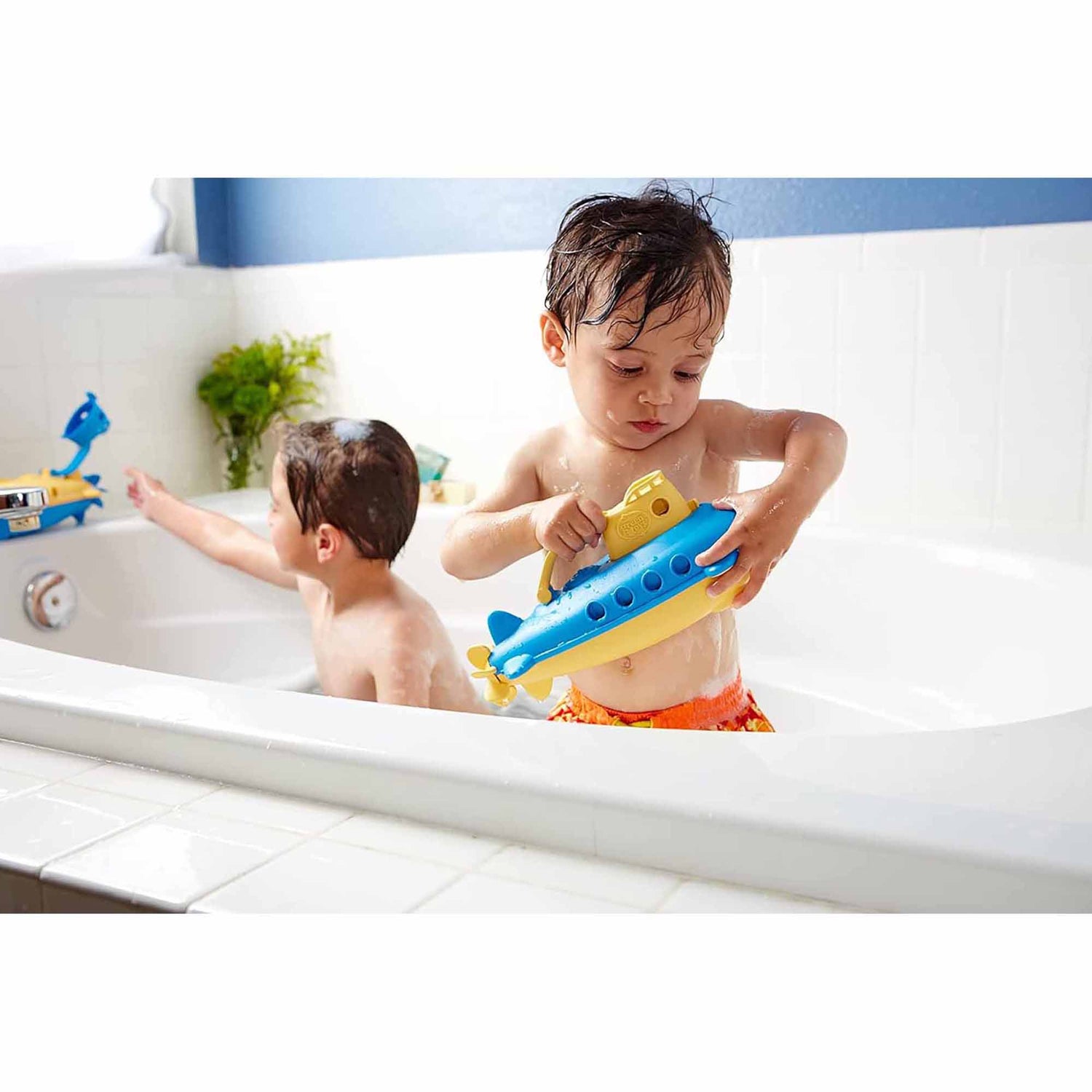 Take the helm of the Green Toys Submarine for a nautical journey to help protect the planet! Submerge it underwater to explore the terrain at the bottom of the tub, and let it resurface to scan the horizon in search of the next earth-friendly adventure. This sturdy watercraft features a spinning rear propeller, a flat bottom for added stability, and the classic handle and wide-mouth opening combination for plenty of scoop-and-pour fun.