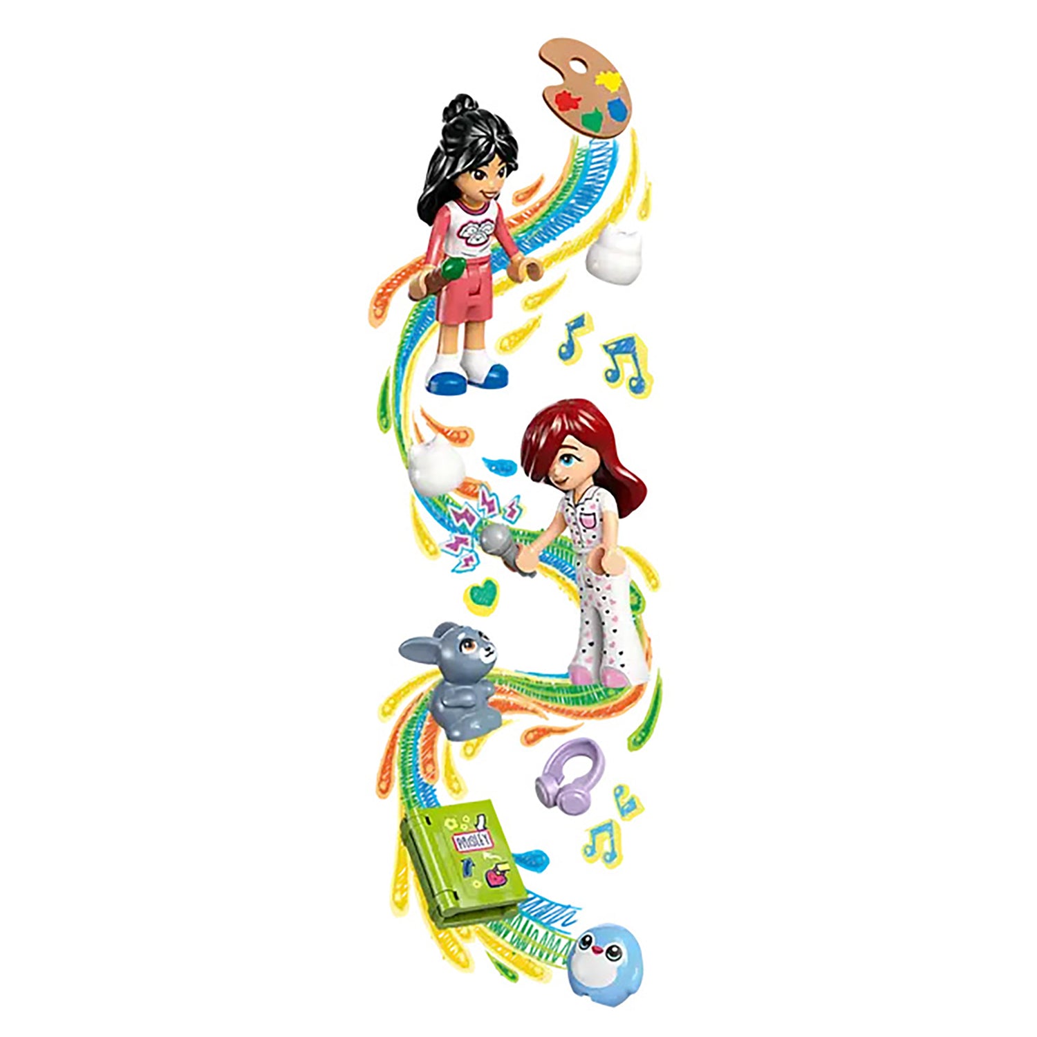 A bedroom playset for kids – Create friendship and fun with this LEGO® Friends Paisley’s Room pretend-play building kit for girls, boys and any fans of arts and crafts aged 6 and up 2 LEGO® Friends characters – This set comes with Paisley and Liann minidolls, a pet bunny figure and a special plushie-style LEGO piece, plus lots of creative accessories for role-play fun Imaginative play – The set is packed with details that celebrate Paisley and Liann’s hobbies, as the pair paint figurines and put on a show using the toy guitar and microphone accessories Fun features and accessories – Care for the pet bunny with the feeding and watering accessories, then discover the bed’s secret compartment where Paisley keeps her diary A gift for music-lovers and art fans – This set makes a fun gift for kids who enjoy creative arts and crafts activities or imaginative play Online show – Inspire more creative-play ideas with other sets (sold separately) and the LEGO® Friends: The Next Chapter online show, where kids can get to know the characters of Heartlake City Measurements – 199-piece set with a bedroom model measuring over 2.5 in. (7 cm) high, 5.5 in. (14 cm) wide and 3.5 in. (9 cm) deep
