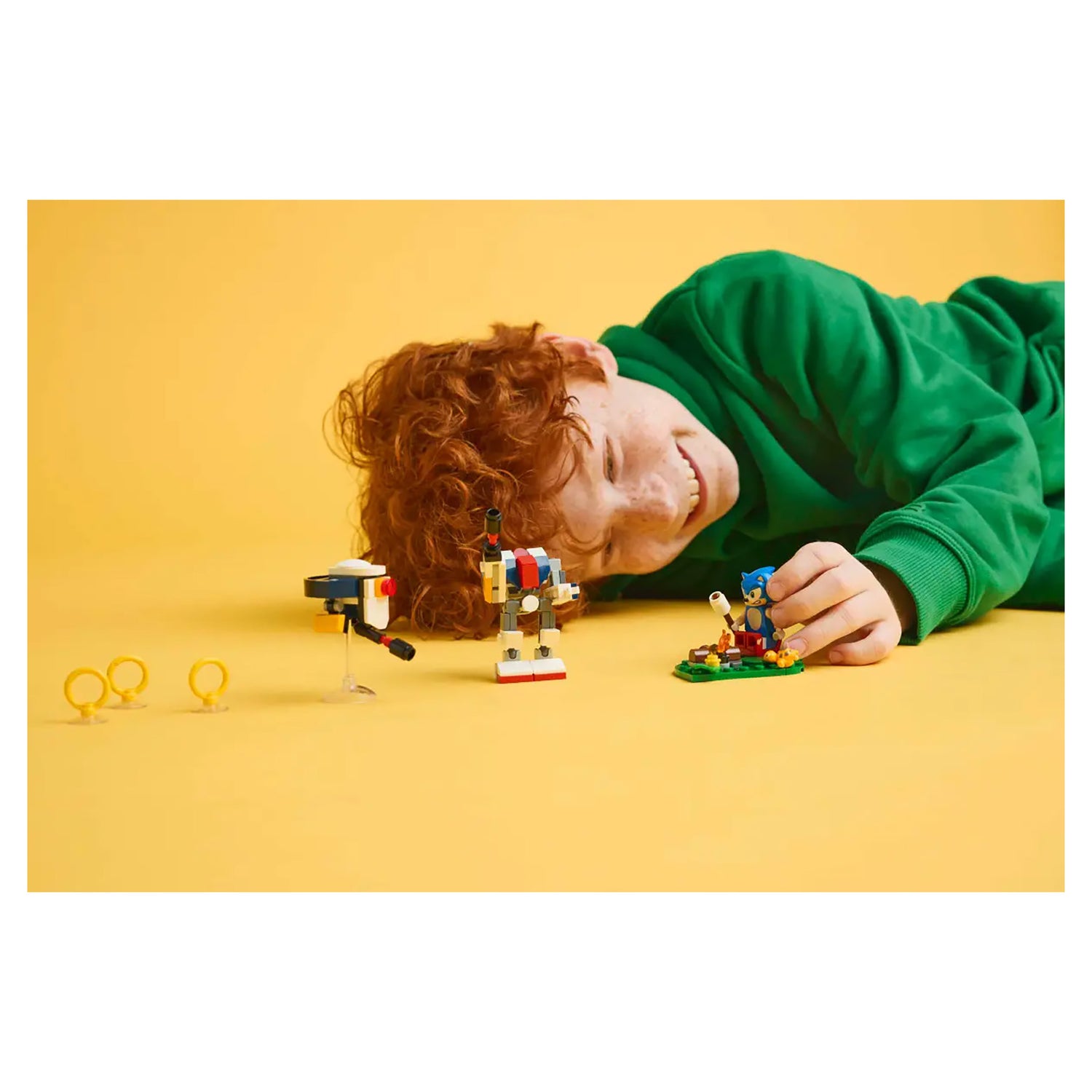 Adventure and fun await video game fans aged 7 and up in this collectible Sonic’s Campfire Clash (77001) building playset. This LEGO® Sonic the Hedgehog™ toy features a campfire area build, speed sphere launcher and speed sphere, plus accessories including a Chaos Emerald and 3 Gold Rings. This video game set also has 4 Sonic character toys: a Sonic minifigure, ’flying’ G.U.N. Beetle robot drone, posable G.U.N. Hunter robot figure and a Tocky.