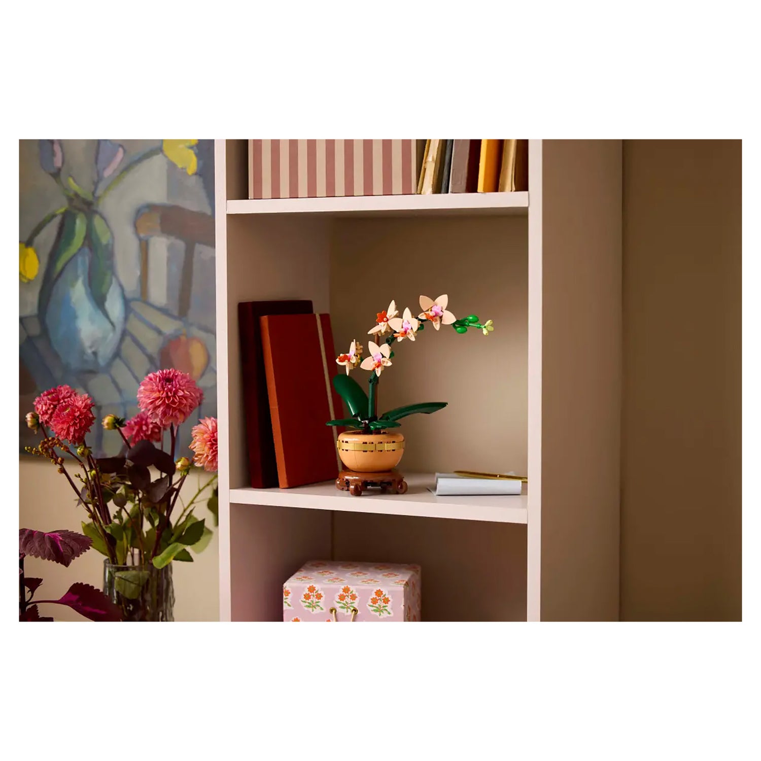The lifelike replica features 5 orchid flowers in bloom and a few in bud, as well as leaves for extra authenticity. It also comes with a light terracotta flowerpot that sits on a beautiful wood-effect plinth, making it easy for budding florists to display the LEGO flower proudly as beautiful home or office decor to bring the tranquility of nature into any living or working space.