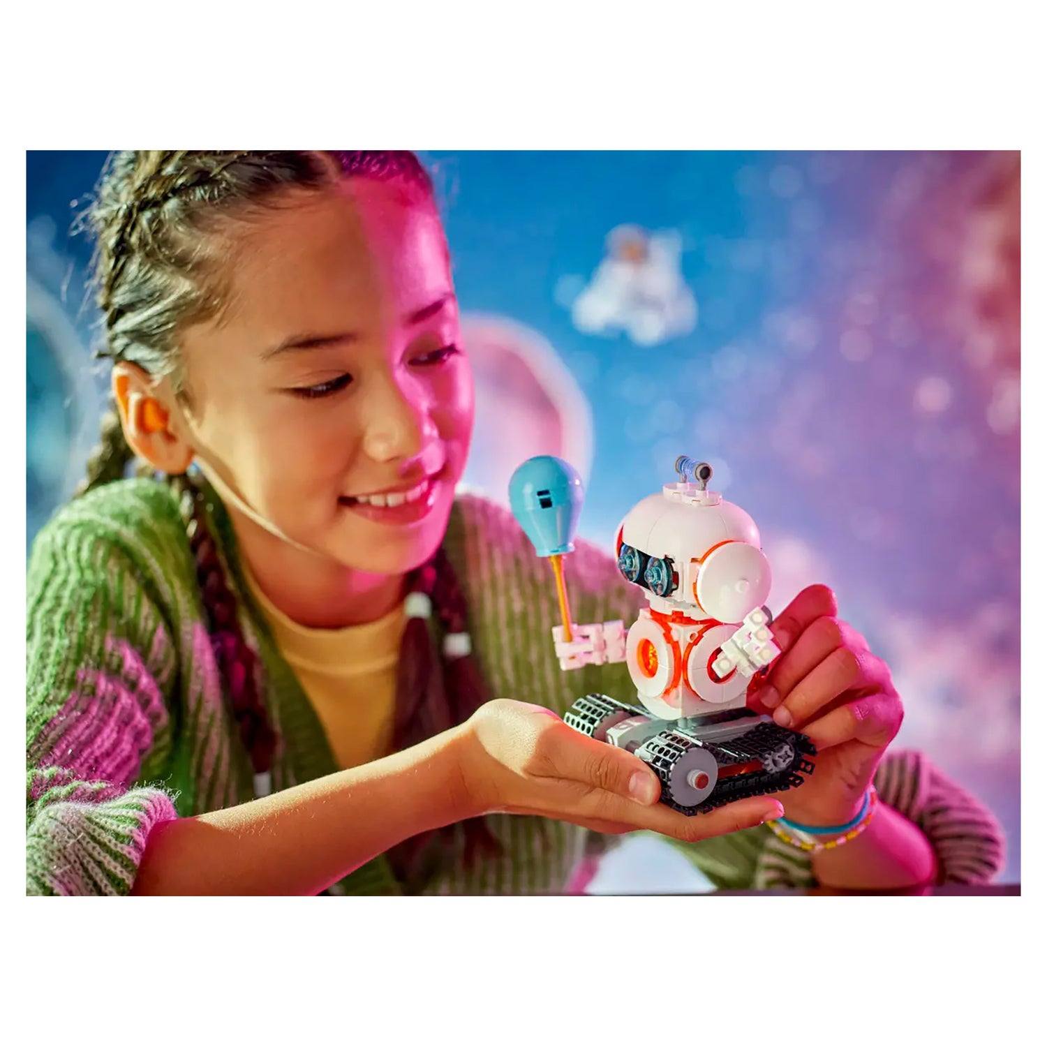 LEGO fans build and rebuild 3 different action-packed space playsets with the same bricks: a robot toy on moving tracks; a posable space dog figure with a bone and a flying disc; or a space rocket. All 3 models are cool space-themed gifts for play and display and illuminate when kids press down on a light brick (batteries included).