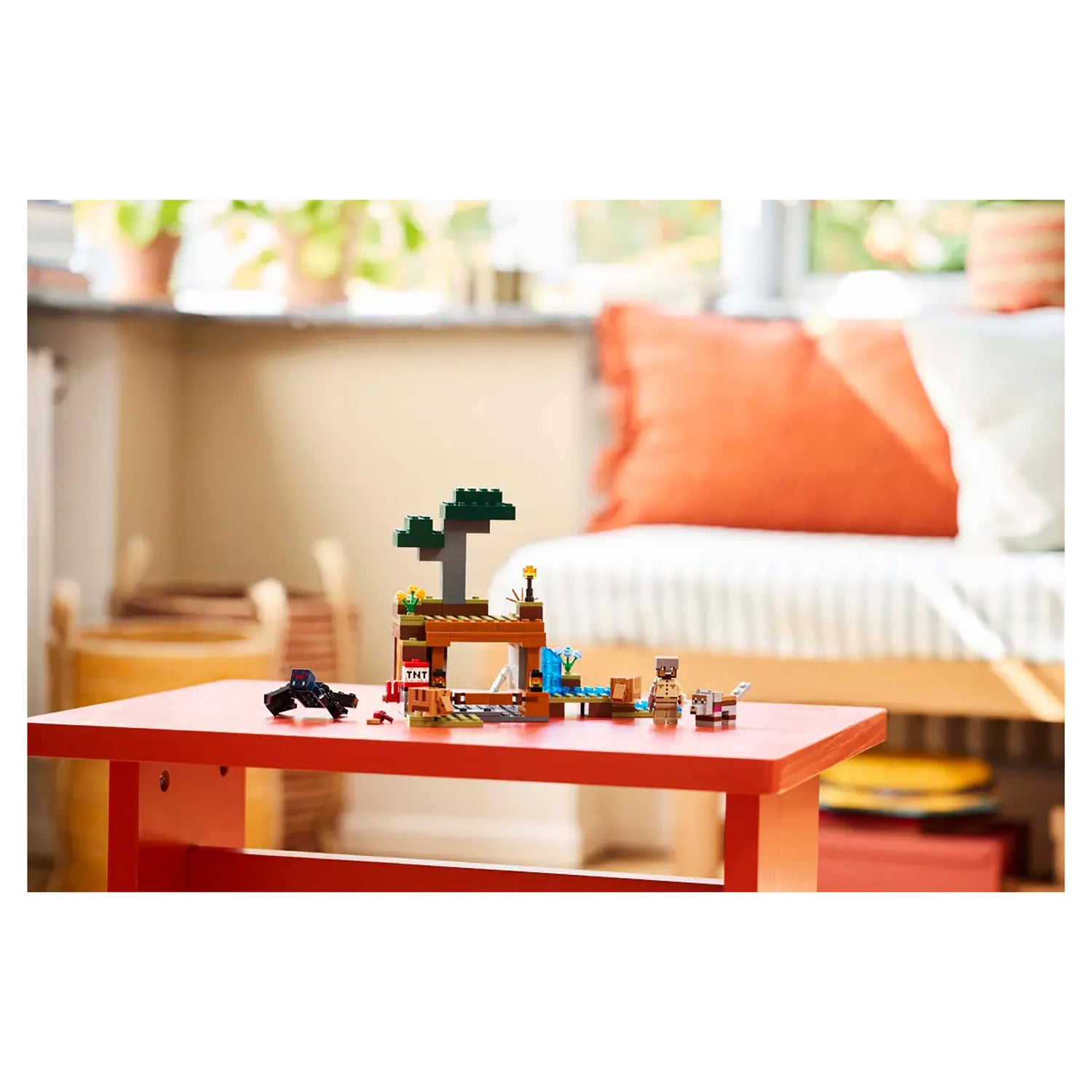Set in the game’s savanna biome, the model features a mine with a lever-controlled TNT function that blasts away a piece of the terrain to reveal precious ore. There is a cave spider toy and a wolf, plus 2 armadillos, which provide the scutes used to craft wolf armor. At the side of the mine there is a small river and a lava fall. The set easily rearranges to inspire new adventures. For extra digital fun, the LEGO Builder app lets kids zoom in and rotate models in 3D using their device.