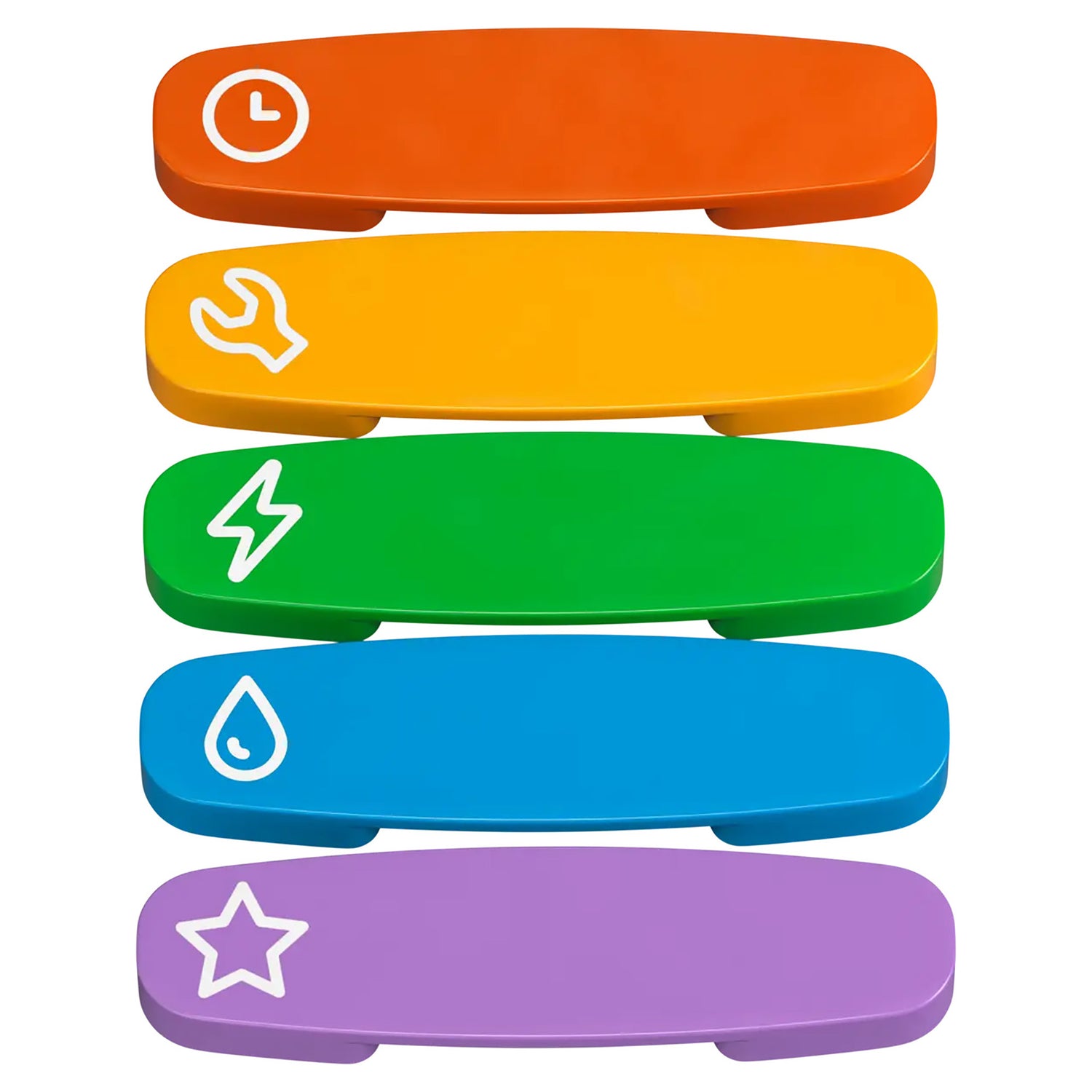 Toddlers’ learning journey starts at the playset’s train station. Preschool kids use creative thinking to plot a route for the Push&Go toy passenger train, taking on fun problem-solving tasks as they go. They can load the train with cargo, charge the engine or wash the carriages. Each activity is brought to life with lights and sounds when the toy train passes over one of the 5 action bricks. This set also helps develop patience and curiosity as toddlers experiment with new ways of building their train track.
