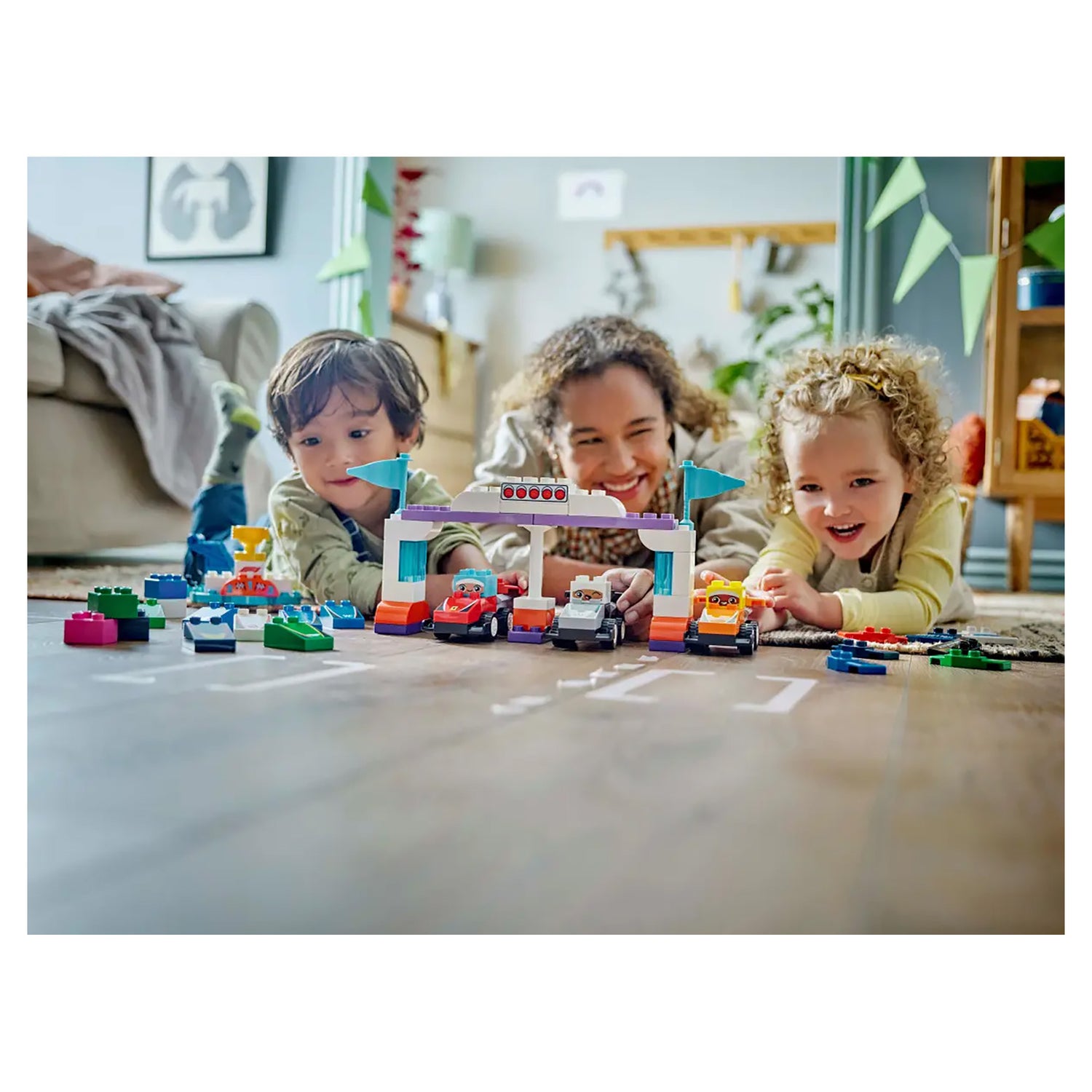 Race car building toy for imaginative play – Transport your toddler to the world of Formula 1® with the F1® Team Race Cars & Drivers race track playsetCreative fun for family playtimes – Share your passion for F1® with your preschooler with this toddler toy that includes 10 buildable race cars, 3 driver bricks, a crane toy, start lights and a podiumRealistic race car toys – These customisable cars come in authentic colours and are decorated with Formula 1® logos so toddlers can recreate realistic F1® race scenariosCrane toy raises the drama – Preschoolers recreate the excitement of a pitstop by attaching the cars to the hook to raise them for a speedy inspectionGifts for toddlers aged 2 years plus – Celebrate the start of the F1® season or treat a toddler on their birthday with a creative gift that’s been extensively tested for a safe play experienceMore high-speed F1® action – Look out for other LEGO® Formula 1® construction sets (sold separately) to build, display and race with the whole familySkill-building construction sets – All LEGO® DUPLO® toys are designed to develop skills, and this one can help toddlers with spatial reasoning, hand-eye coordination and fine motor skillsDimensions – This 70-piece learning toy for toddlers includes a starting lights gantry measuring over 16 cm (6.5 in.) high, 38 cm (15 in.) wide and 6 cm (2.5 in.) deep