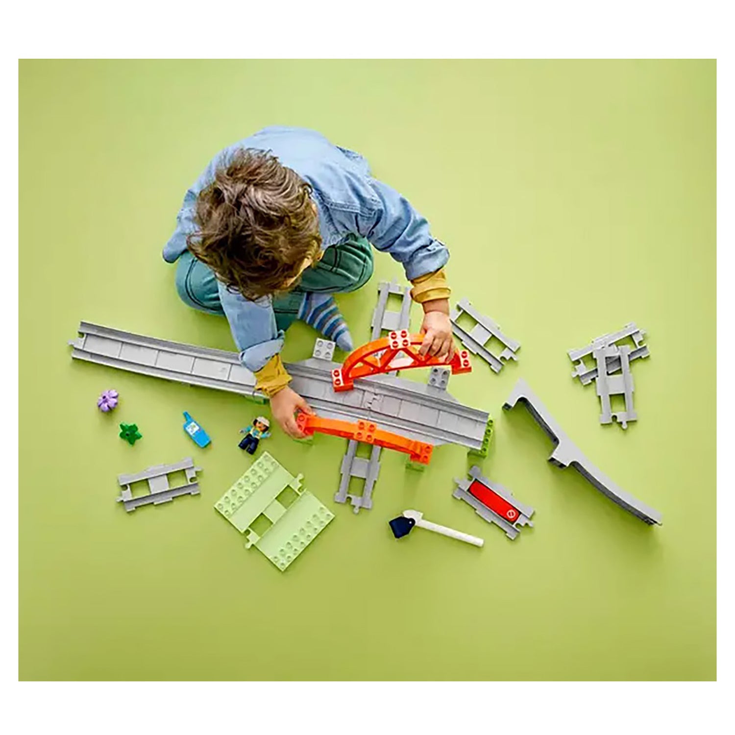 Train track toy set – Toddlers aged 2+ extend their LEGO® DUPLO® railway adventures and learn development skills with the Train Bridge and Tracks Expansion SetComes with lots of extra pieces to grow the fun – This creative building toy includes 8 track pieces, 1 action brick, a buildable bridge, raisable barrier and an engineer figure with a cell phoneTrack building that connects to toy train sets – This set combines with LEGO® DUPLO® Town interactive train sets (sold separately) to expand toddlers’ learning journeys even furtherAnytime gift idea – This extension set makes a fun treat for any toddler who loves to play with their LEGO® DUPLO® interactive toy train set, sold separatelySkill-building playsets – LEGO® DUPLO® build-and-rebuild interactive train toys are expertly designed to develop toddlers’ creative problem-solving, patience, focus and perseverance skillsQuality toddler toys – All elements of this LEGO® DUPLO® toy have been tested to the max to ensure they fulfill demanding child safety standardsMeasurements – This 42-piece set includes a raised bridge measuring over 9.5 in. (24 cm) high, 41 in. (105 cm) wide and 6 in. (16 cm) deep