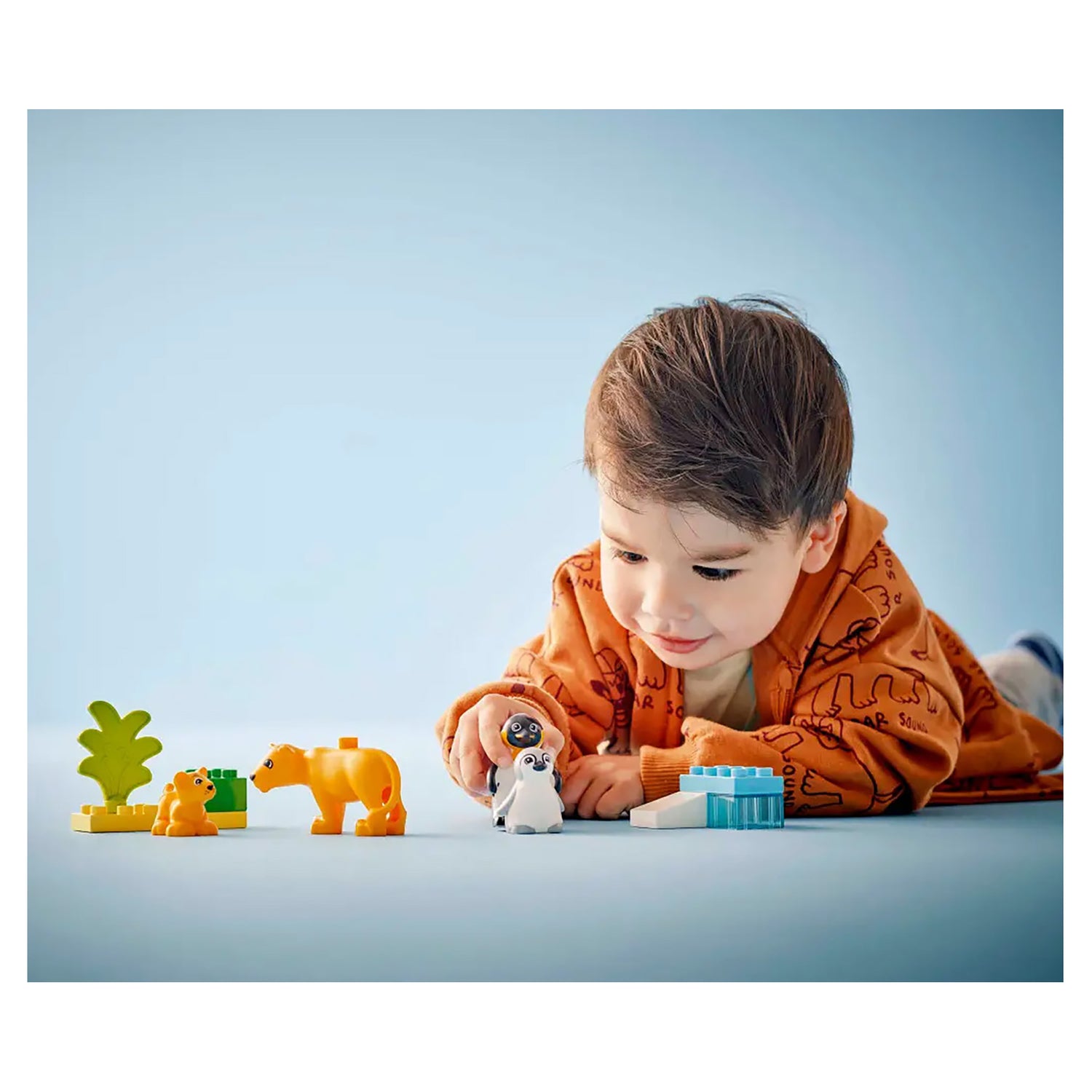 Building toy for creative play – The Wild Animal Families: Penguins & Lions (10442) imagination toy gives little animal-lovers endless inspiration for social, emotional and creative playNature toy develops fine motor skills – Toddlers build a grasslands scene in which the lions can play peekaboo games, and they can construct a slide for the penguins to whiz downPenguin and lion toys for kids – This role-play toy comes with 2 brick-built habitats and 4 LEGO® DUPLO® animal figures: a parentpenguin and chick and a lioness and her cubToddler toy helps kids learn through play – Pack kids’ playtimes with learning as toddlers play out caring for baby animals and learn to recognize differences between big and small and hot and coldCreative gift for toddlers aged 2 plus – This just-because treat makes a great gift for toddlers who love animal adventure playsets and social-emotional toys that let them express their caring natureDigital building instructions – The LEGO® Builder app features a digital version of the instructions included with this adventure playset, which has been tested to ensure a safe play experienceSkill-building preschool playsets – LEGO® DUPLO® sets are designed to support a toddler’s development by helping them learn through play in a fun and engaging wayDimensions – This 10-piece building toy measures over 2.5 in. (13 cm) high, 8.5 in. (22 cm) wide and 2.5 in. (7 cm) deep