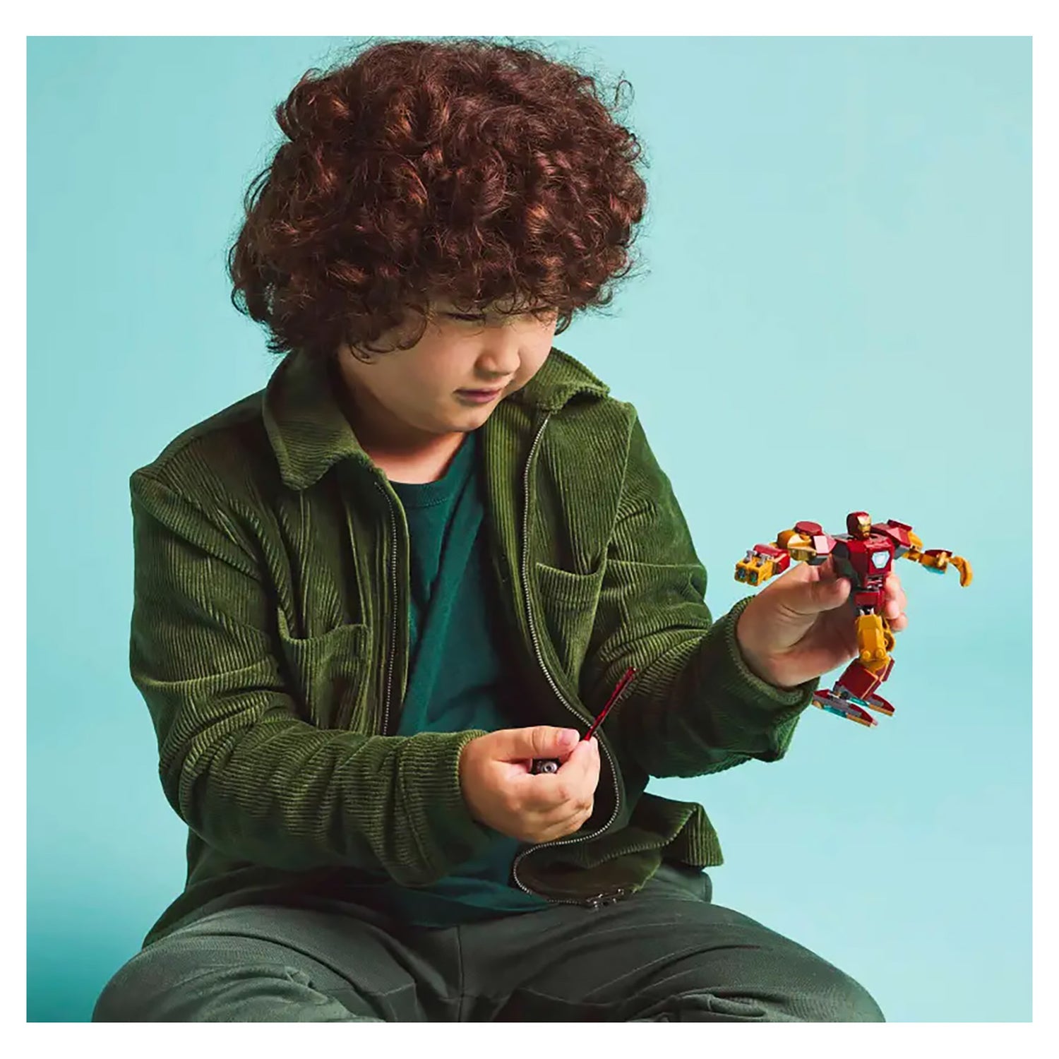Buildable Iron Man playset – Scale up the Super Hero action with Iron Man Mech vs. Ultron for boys and girls aged 6 and up LEGO® Marvel minifigures – The set comes with 2 minifigures: Iron Man with a flip-open helmet and reversable head showingalternative expressions, and Ultron holding a laser beam element Buildable Iron Man mech – The posable figure has movable arms, legs and fingers and the torso opens to reveal a cockpit that can hold the Iron Man minifigure LEGO® Marvel mech weapon –The end of the mech’s right arm features a built-in dual stud shooter Iron Man gift for kids – Treat boys and girls who are fans of Super Heroes, LEGO® building or mechs to this buildable Iron Man playset Expand the fun – This Super Hero playsetis compatible with all other LEGO® Marvel buildable toys, sold separately Super Hero collectibles for kids – LEGO® Marvel buildable toys are designed to deliver endless imaginative build-and-play possibilities for young Super Heroes 101-piece buildable playset – Put epic adventures into the hands of any young Super Hero with this Iron Man mech, which stands over 4.5 in. (12 cm) tall