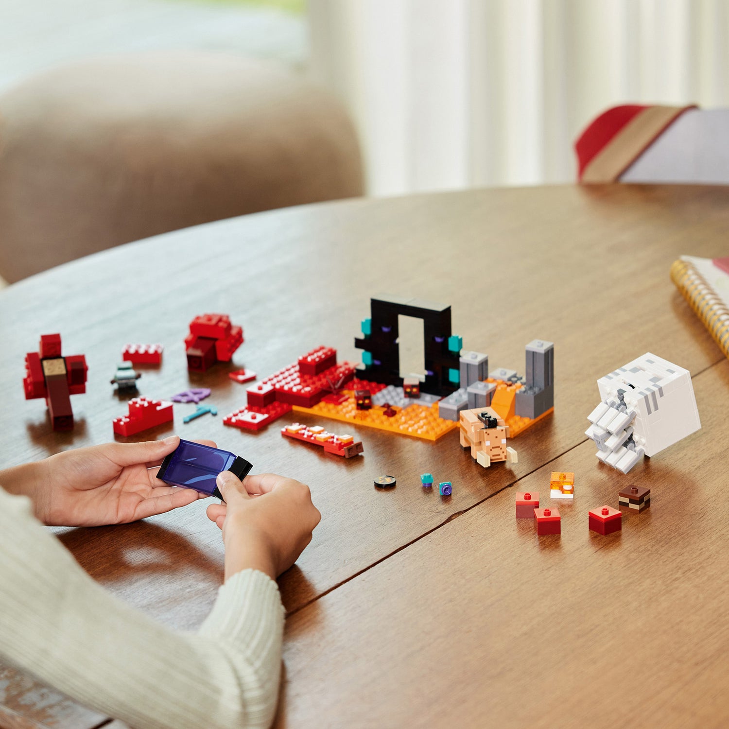 • LEGO® Minecraft® Nether portal toy – This Minecraft adventure set for gamers, kids, boys and girls aged 8+ features buildable action scenes with iconic Minecraft characters
