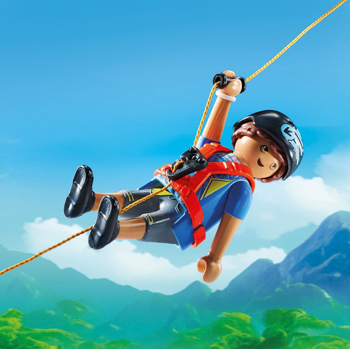 The brave research team approaches the gigantic Brachiosaurus with a hovercraft that can navigate actual water. While one of the researchers daringly swings on the zipline to the tree to observe the Brachiosaurus feeding, the researcher stays back at a safe distance. She focuses on documenting the dinosaur's behavioral patterns using her advanced equipment. The Brachiosaurus, equipped with a movable jaw, leisurely plucks leaves from the trees. Includes a dinosaur knowledge card.¶The PLAYMOBIL Brachiosaurus with Hovercraft playset is packed with thrilling features for dino-lovers and adventure seekers! The floating hovercraft holds two PLAYMOBIL figures and is perfect for water-based exploration. Use the zipline to glide into the action or watch as the Brachiosaurus grazes on removable leaves. Discover hidden treasures like a dragonfly trapped in amber and dive into dinosaur facts with the included educational card.¶¶Made on average from over 80% recycled and bio-based materials, this PLAYMOBIL playset inspires hours of imaginative fun!¶¶Additional Information¶Figures: 1 man, 1 woman¶Animals: 1 Brachiosaurus, 1 dragonfly¶Accessories: 1 rock, 2 seats, 1 string, 1 hovercraft, 1 net, 1 attachment with propeller, 1 set of tools, 1 microscope, 3 test tubes, 1 test tube holder, 1 folding chair, 1 boomerang, 1 walkie-talkie, 1 laptop, 6 branches, 1 piece of amber, 2 halves of rock, 1 wooden board, 1 suitcase, 1 hook, 4 adapters, 1 tree top, 1 tree, 1 branch, 3 foliage, 2 plants, various flowers