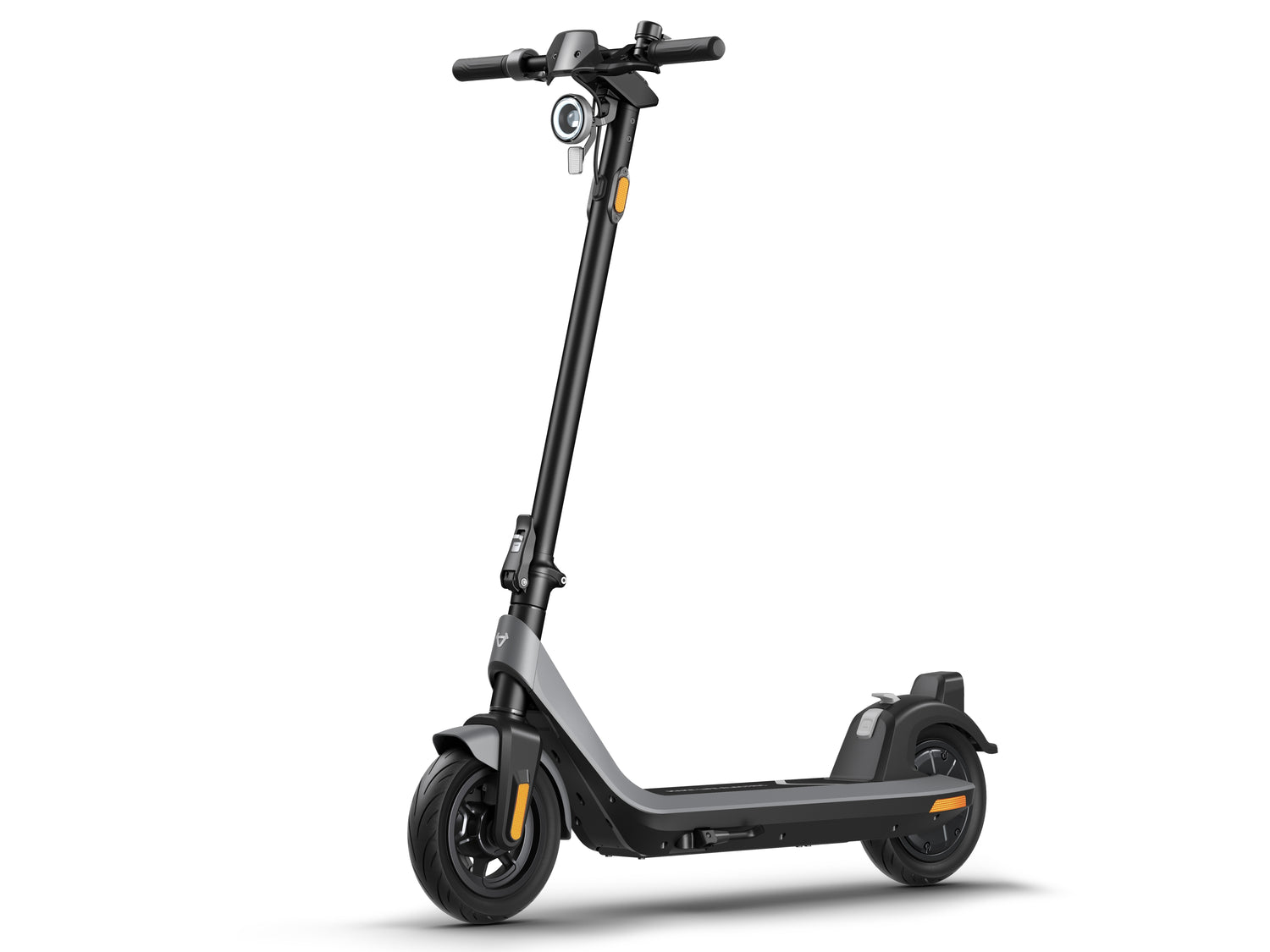 Its built-in iconic LED halo daytime running light, brake light, and bell ensure that the kickscooter is highly visible and audible to other road users while on the move.