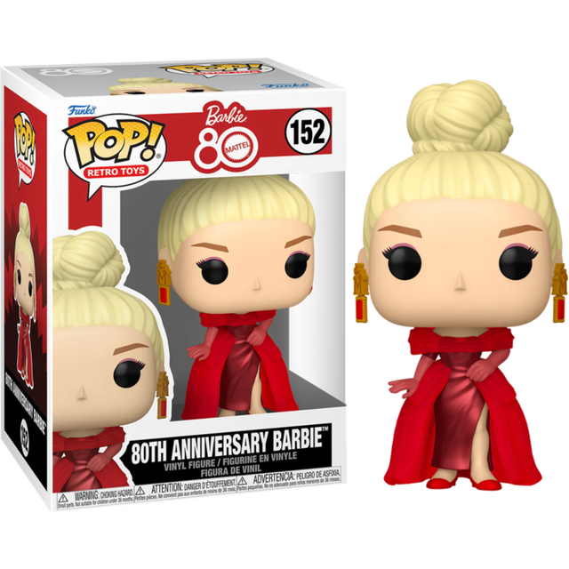 Roll out the carpet in your collection for this stunning POP! 80th Anniversary Barbie! Celebrate the 80th Anniversary of Mattel by welcoming this glamorous icon to your Retro Toys lineup!