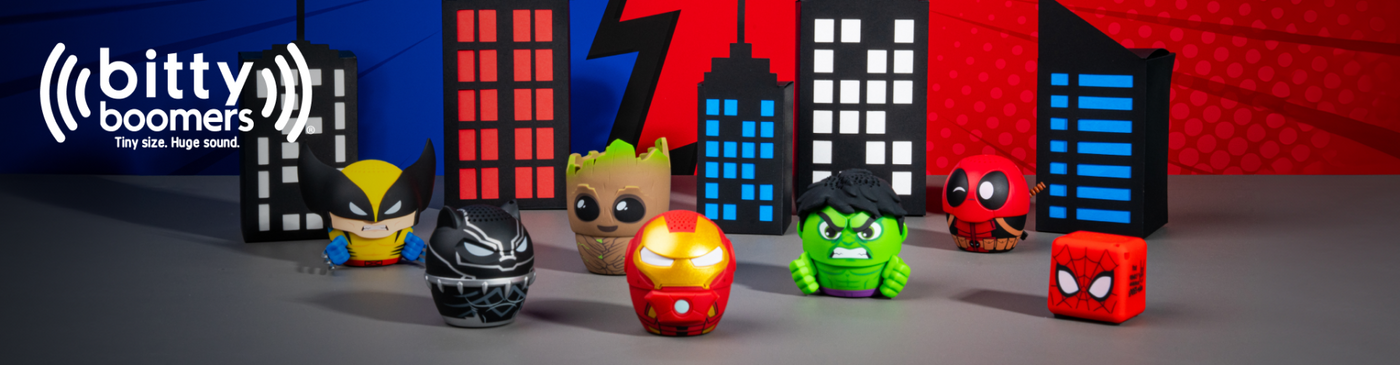 Welcome to Bitty Boomers, where your favorite characters come alive through incredible audio. These ultra-portable Bluetooth speakers pack powerful, room-filling sound into collectible 5cm designs featuring Marvel, Star Wars, Disney, and more beloved characters. With Bluetooth 5.0 connectivity and up to 4 hours of playtime, they're ready to soundtrack any adventure from backpack to pocket.