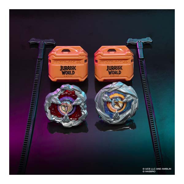 Beyblade X Jurassic World x Beyblade Collab Spinosaurus vs. Quetzalcoatlus Set, 2 Takara Tomy Tops, 2 Launchers, Battling Tops Game, Ages 8+