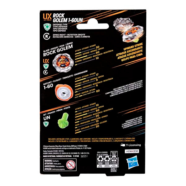 Beyblade X Rock Golem 1-60UN UX Starter Pack Set with Takara Tomy Stamina Type Top and Launcher, Battling Tops Game Toys, Ages 8+