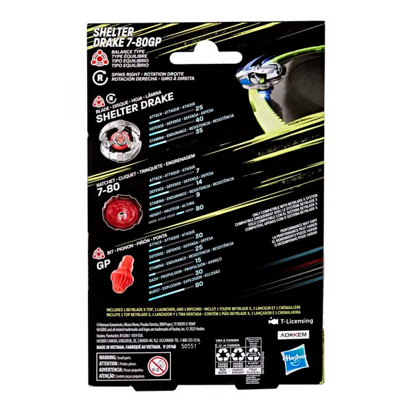 Beyblade X Shelter Drake 7-80GP BX Starter Pack Set with Takara Tomy Balance Type Top and Launcher, Battling Tops Game Toys, Ages 8+