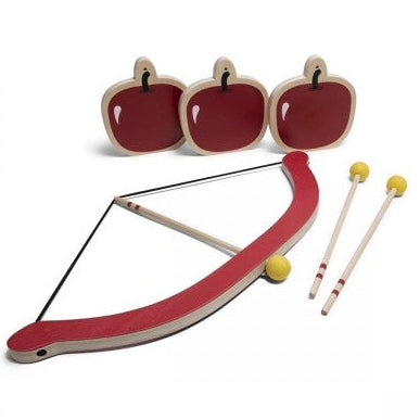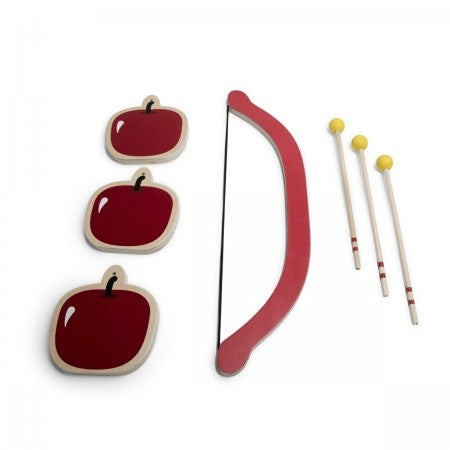 A child-safe bow and arrow set. Recreate the medieval world of Robin Hood while developing gross motor skills and eye-hand coordination. Contains a wooden bow, 3 wooden arrows with protective tips and 3 wooden apple targets. For children aged from 5 years. Always use outdoors under adult supervision. See user instructions for more details.