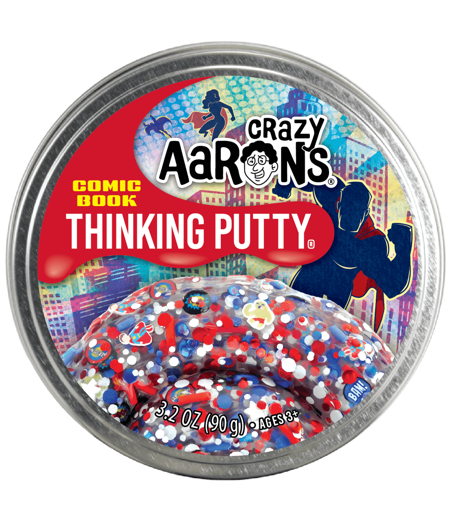 Save the day with Comic Book Thinking Putty®! This super powered putty has all the thrilling elements of an animated picture book exploding with character pieces and call outs to stretch and smoosh for fidget WOW.