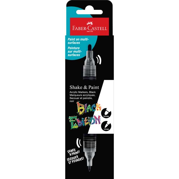 Own your individuality and create freely on multiple surfaces with Faber-Castell Black Edition Shake & Paint Acrylic Markers. With highly pigmented opaque water-based acrylic ink across two versatile nibs, these markers unlock freedom for self-expression and can transform surfaces from drink bottles to backpacks with bold designs that stand out from the crowd.