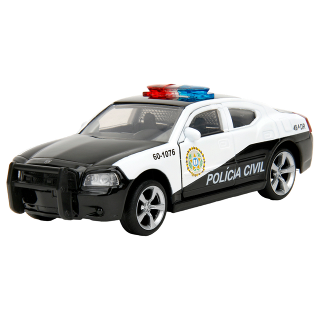 Straight from the heist film Fast Five comes this dynamic 1:32 scale police die-cast vehicle. This 2006 Dodge Charger boasts bold lines, and movie authentic logos and styling. As the film takes place in Rio de Janerio, the Portugese police branding on the ride's doors add that extra touch of street cred.