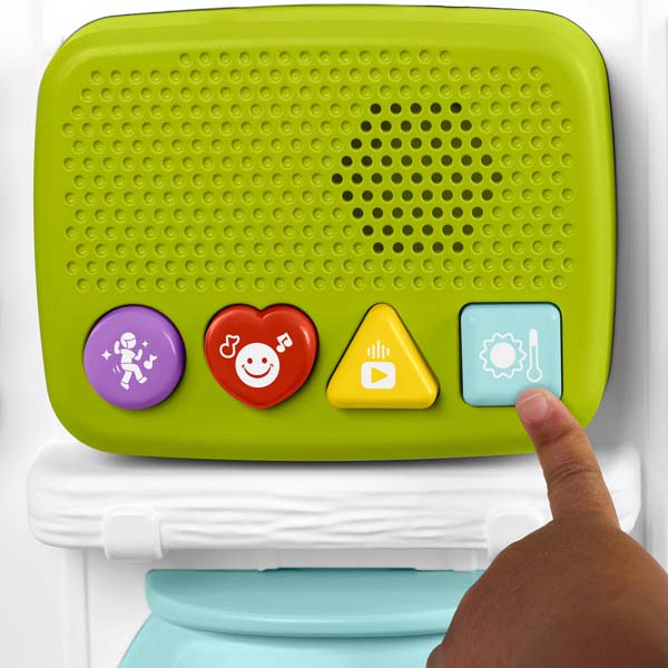 The Laugh & Learn Ultimate Playhouse playset from Fisher-Price is packed with engaging activities, lights, songs and sounds for baby and toddler homeowners to discover. The house exterior features a doorbell, porchlight, shape-sorter window box, drop-through rain spout and more. The crawl-through door leads to baby’s living area with desk, light-up fishbowl, flower spinner, thermostat dial, and a pretend radio with 4 buttons that activate fun music and sounds. And with Smart Stages technology, the learning grows along with your baby with 200+ fresh songs, sounds and phrases! Colours and decorations may vary.