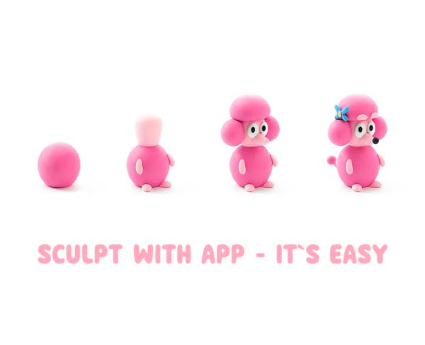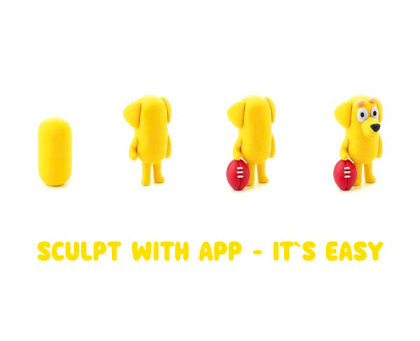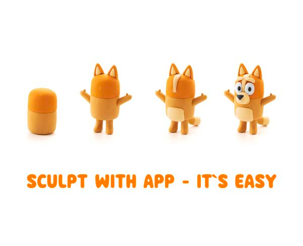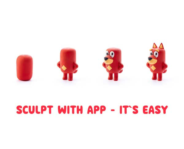 The fun starts once you download the free app and gain full access using the promo code included in the box. Pick one of the six Bluey characters. Then, follow along with the interactive 3D step-by-step instructions to masterfully mold it, one simple shape at a time. As kids create, they learn useful techniques - rolling perfect spheres, cylinders, facial features, textures, and more - until finally, once the last model is built, they can't wait to try inventing their own characters!