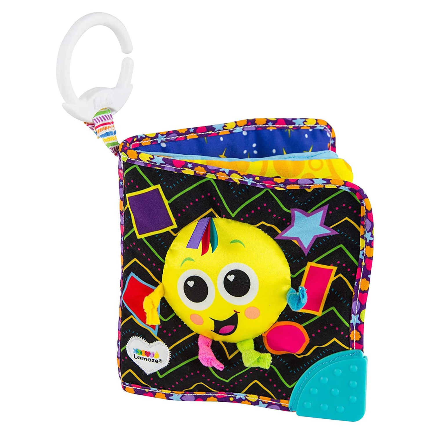 The Lamaze Fun with Shapes Soft Book features colorful characters for you and baby to bond over during storytime. The interactive soft pages include a discovery mirror and bright colors for babies to explore. Squeaker, rattle and crinkle sounds engage baby as they discover something new on each page. Gripping and grabbing the soft cloth pages and different textures helps with the baby's tactile, cognitive skills and fine motor skills development. The included clip lets you take this book on the go.
