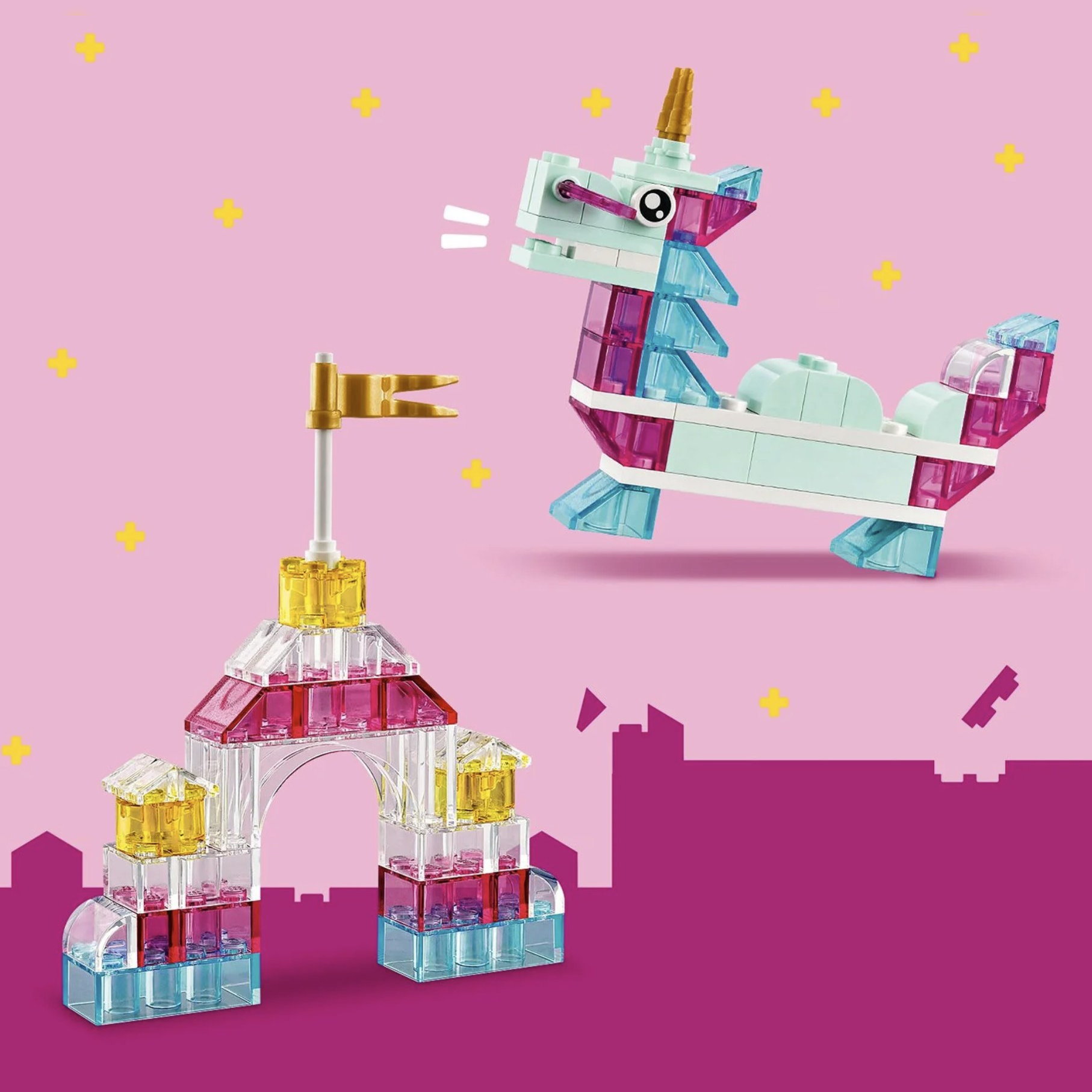 Colorful, translucent building bricks ¬– Magical Transparent Box is a LEGO® brick-build, play-and-display set for creative kids, packed with fun and fantasy models for girls and boys aged 5 and up