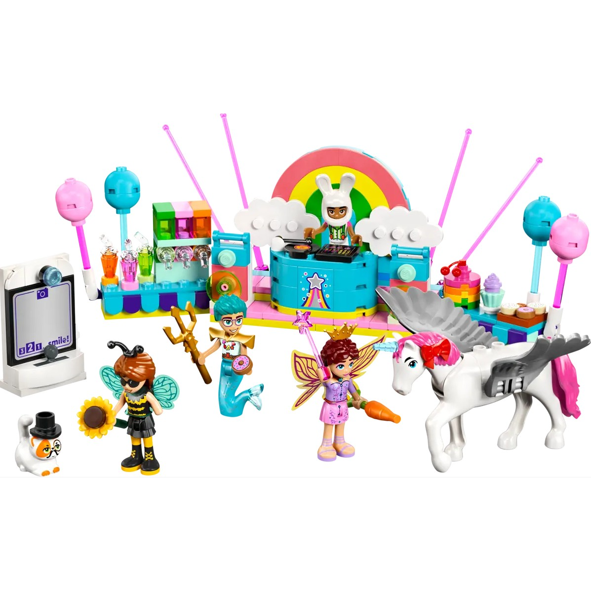 A building kit to inspire imaginative play – This kids’ LEGO® Friends Costume Party with Unicorn & Fairy includes a fun party scene with a DJ booth to delight girls and boys aged 6 and up