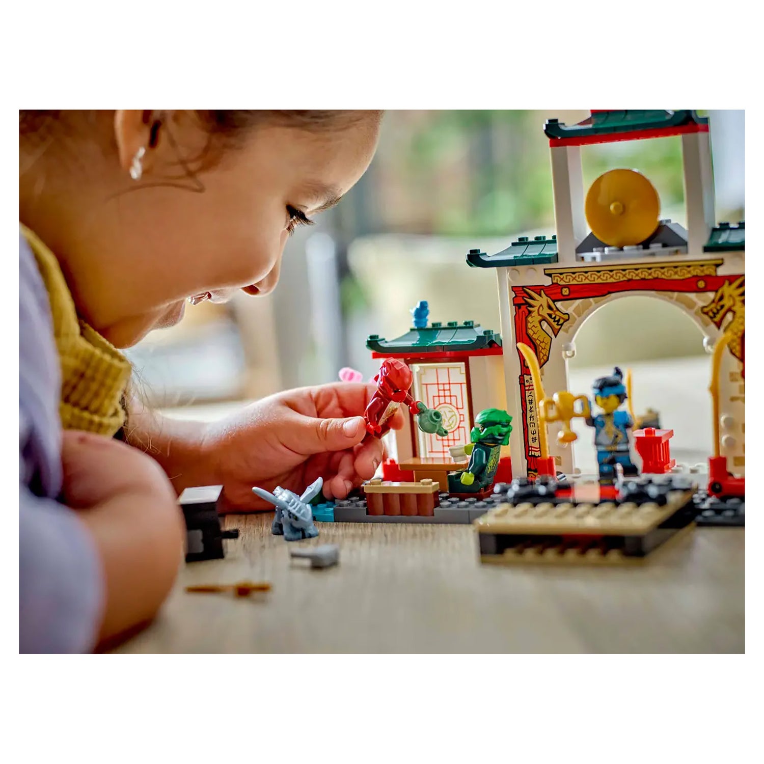 Delight ninja toy-loving kids with the LEGO® NINJAGO® Ninja Spinjitzu Temple (71831). This dragon toy playset allows children aged 4 and up to recreate adventures from season 3 of the NINJAGO Dragons Rising TV show. This ninja toy role-play set is ideal for pretend play with a NINJAGO tournament stage, garden, teahouse and weapons training area.