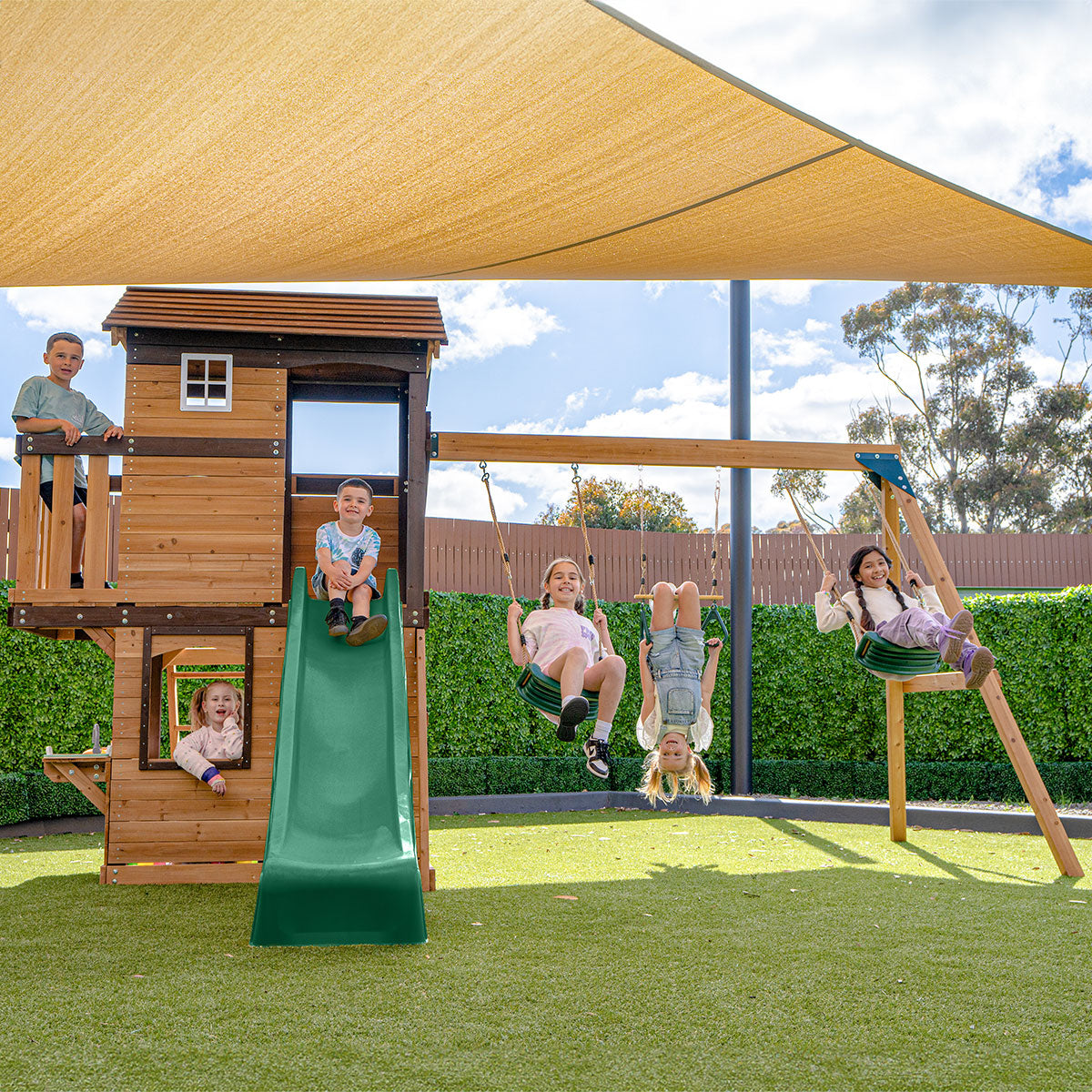 Take in the view from the Darlington Play Centre Set, where your backyard transforms into the ultimate adventure zone for Aussie kids. This all-in-one play centre features an overhanging lookout complete with a telescope, offering a unique perspective on outdoor fun and sparking imaginative play. The set includes a thrilling 2.2m wavy slide, ladder access for climbing challenges and a 3-position swing beam equipped with two swings and a trapeze for versatile play. With the Darlington Play Centre Set, your children will enjoy a safe, exciting and sustainable play area that inspires endless outdoor adventures.