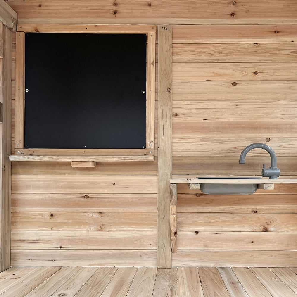Youngsters will have endless adventures with the Kingston Play Centre and 2.2m Slide. This beautiful timber play centre & cubby house combo will have your little ones entertained for hours, with sandpit, monkey bars, swing set, climbing wall, climbing rope, and slide. Watch their creativity grow with a fun chalkboard and sink included.