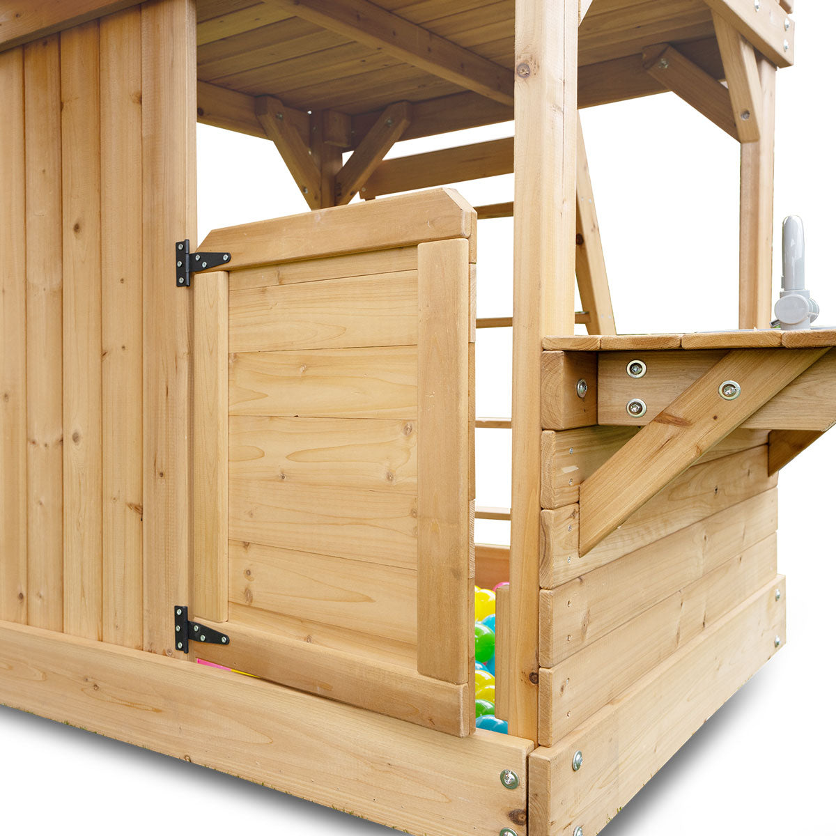 The Montrose Play Centre Set offers a fantastic backyard adventure for Aussie kids, featuring a 2.2m wavy slide, a 3-position swing beam with two swings and a trapeze and an upper play fort with a telescope and windows. Designed with a ladder for easy access to the upper fort and a downstairs area complete with a door, window and play kitchen, this play centre is perfect for imaginative and active play. Rigorously tested to meet Australian Standards, the Montrose Play Centre is designed for safety and long-lasting enjoyment for Aussie kids.