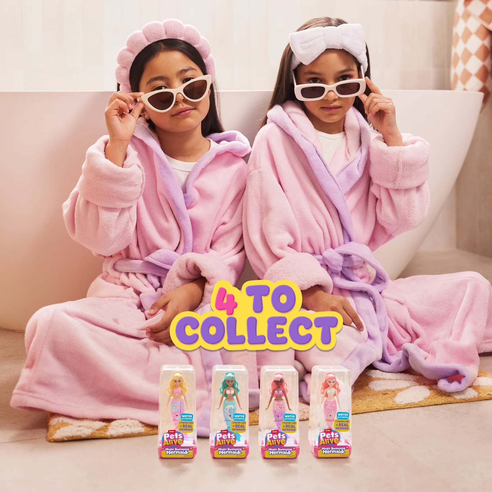 Make a splash with the Pets Alive Magic Swimming Mermaid by ZURU - the water-activated mermaid doll that swims like magic! Simply place her in water and watch her come alive with lifelike swimming motion. With moving parts and interactive water play, she's perfect for bath time, poolside fun or water table adventures. Each mermaid features a beautifully detailed design and colourful tail, bringing vibrant personality to every underwater story. With four unique mermaids to collect, kids will love discovering which character they get next. This robotic toy inspires imaginative play, encourages storytelling and adds a touch of fantasy to water playtime. Lightweight and easy for little hands to use, it's ideal for children and toddlers aged 3+. Dive into magical fun and collect them all!