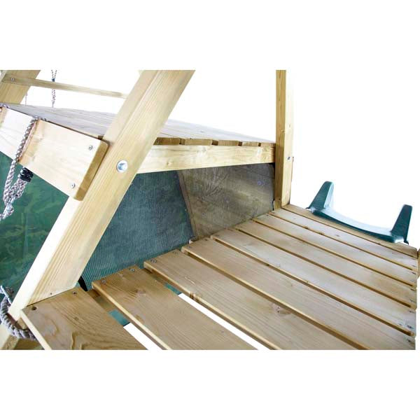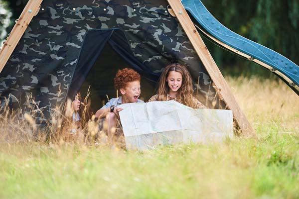 Children will have hours of outdoor fun and games with this Plum® Climbing Pyramid with swing extension. Double the seats for twice the fun! Children will love this double swing extension for encouraging great outdoor play and exercise. They will enjoy hours of outdoor play with the large double play deck with cargo net, ladder, rock wall with coloured hand and foot grips and 8ft wave slide. The camouflage fabric side panels create a large secret play den area inside the pyramid, great as a rendezvous point on secret missions or as kiddies HQ! This play centre is ideal for imaginative role play games and will help children burn off energy in a fun environment. Made from premium FSC® certified sustainably sourced wood, the Climbing is naturally resistant against wood rot and insect damage. The swing set uses soft feel ropes and heavy duty blow moulded seats for extra durability. Parents can therefore have the peace of mind that their children are using a quality play centre with safety standards at the centre of its design.