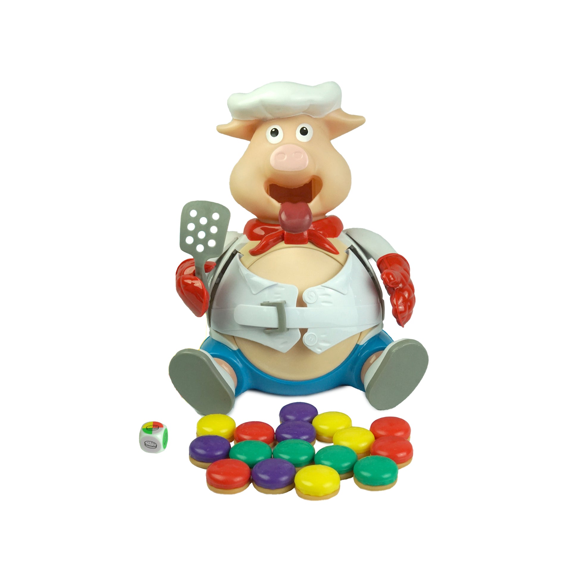 Fun game for the littlies! Feed the pig and watch him get bigger until he pops! Roll the dice, feed him the burger press his head down and if he pops you win. Age 4+