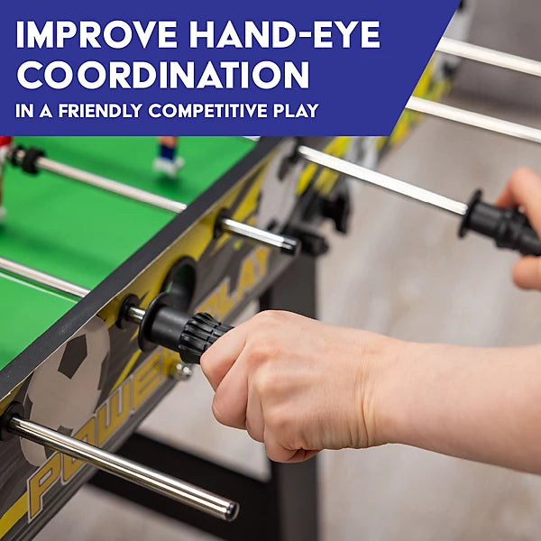 Bring the excitement of table football into your home with the Powerplay 3ft Folding Football Games Table! Perfect for kids and adults alike, this compact yet thrilling game provides endless hours of competitive fun. Whether you're challenging friends, family, or practicing solo, this table is designed to deliver fast-paced action in a space-saving format. With its sturdy free-standing design, this table offers a stable playing surface that ensures every match is smooth and enjoyable.