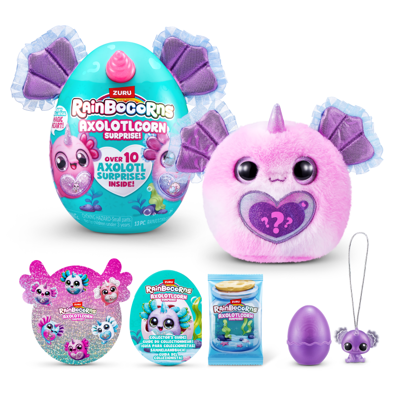 Discover the wonders of axolotls with the Rainbocorns Axolotlcorn Surprise, the latest magical arrival in Rainboville! Each Axolotlcorn plush comes with 10 exciting axolotl-themed surprises and a baby Boo-Boocorn companion waiting to be hatched. With 6 unique Axolotlcorns to collect, the adventure is just beginning! Unlock surprises and dive into a world full of fun and magic with this soft and cuddly plush.