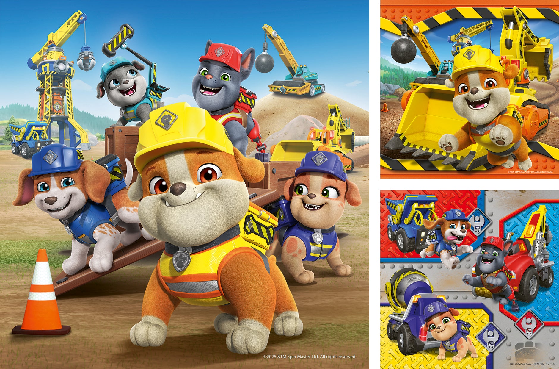Three, 49 piece high quality bright jigsaw puzzles featuring characters from new series Rubble & Crew. Join Rubble, Wheeler, Mix, Charger and Motor as they set off to save the day in three different adventures! Construction crew to the rescue! Our 3 x 49 piece kids puzzle are crafted with premium quality materials, Each puzzle measures 21 x 21cm when complete. Ages 5 +
