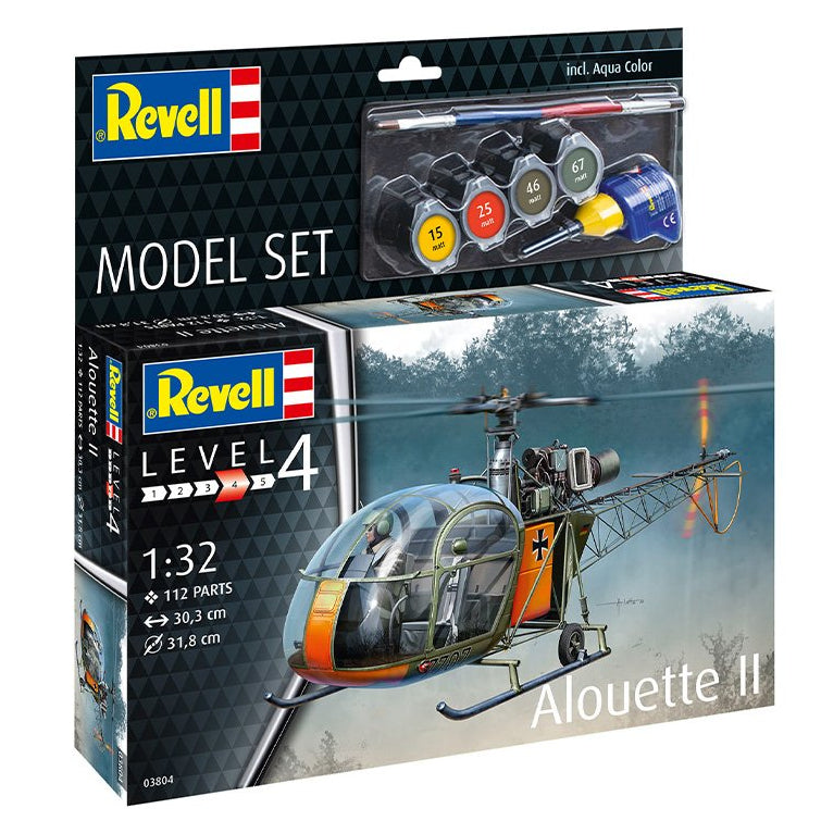 The Alouette II is a helicopter from French production. It was one of the first mass-produced helicopter types since the development of airworthy and serviceable helicopters with gas turbine engines. . Detailed surface structures. Rotatable rotor Authentic representation of the following versions:. Aerospatiale SE.3130 Alouette II, Hubschrauberführerschule Luftwaffe, 1972. Aerospatiale SE.3130 Alouette II, Flugzeug führerschule "S", Luftwaffe, 1970. Aerospatiale SE.3130 Alouette II, Bundesgrenzschutz, Grenzschutz fliegerstaffel Küste, Fuhlendorf 1974. Aerospatiale SE.3130 Alouette II, Prototype 01, Vélizy Villacoublay 1988 In addition to basic colours, adhesives and brushes are also included.
