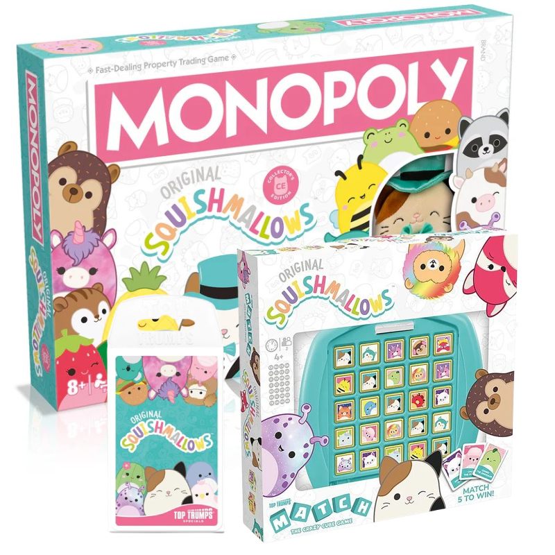 Squishmallows Game Collection includes Monopoly, Match & Top Trumps Card game